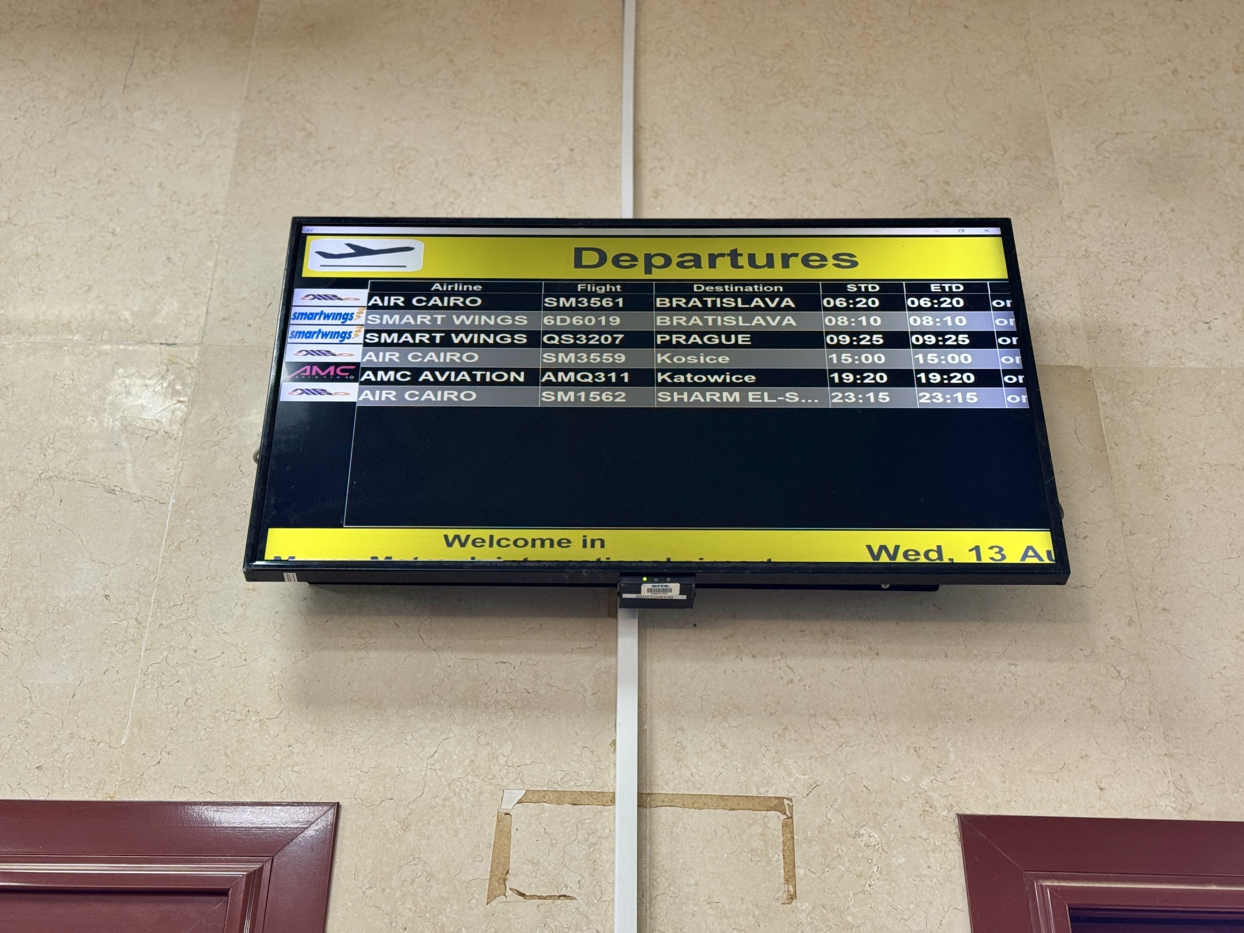 Flyplassen brukes til charterflyvninger i sommersesongen fra mai til oktober og som militærbase for den 102. taktiske jagerflybrigaden i det egyptiske luftforsvaret. Mens du taxer langs rullebanen, kan du beundre de militære MIG-flyene inne i de befestede hangarene fra flyet.