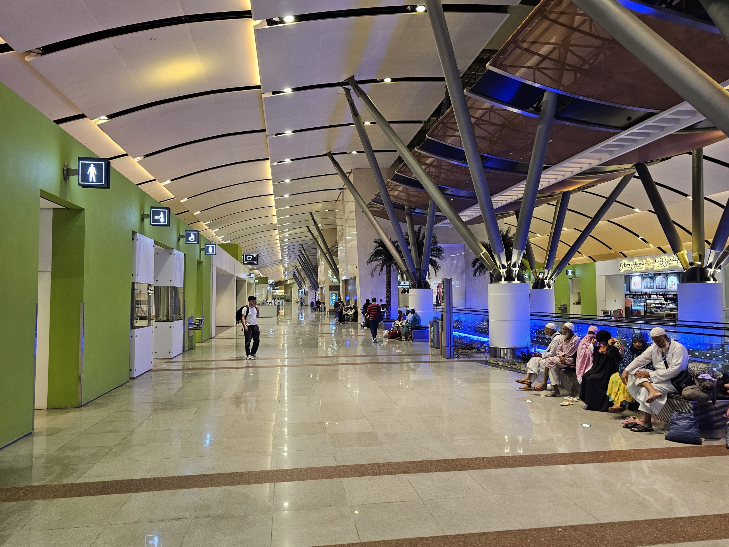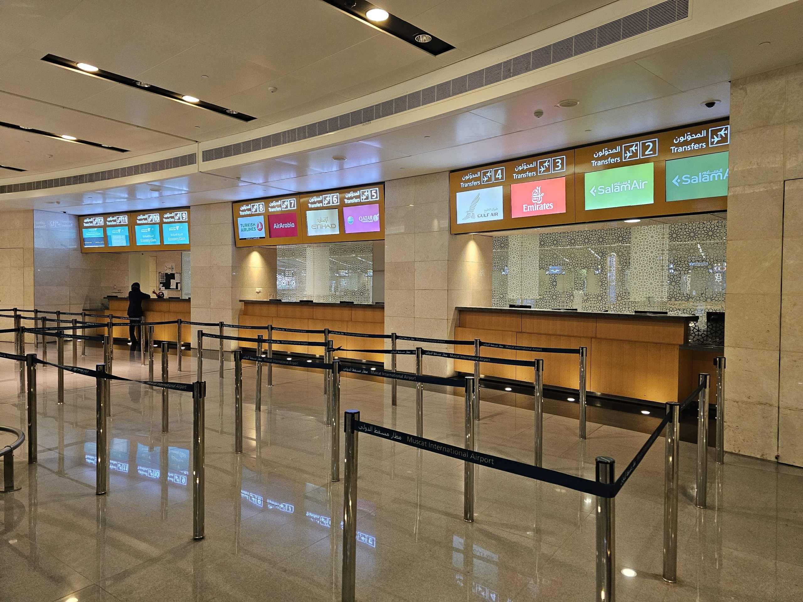 Muscat har bare én stor og moderne terminal, men den er ikke i nærheten av størrelsen til andre flyplasser i regionen, som Dubai, Riyadh, Jeddah eller Doha.