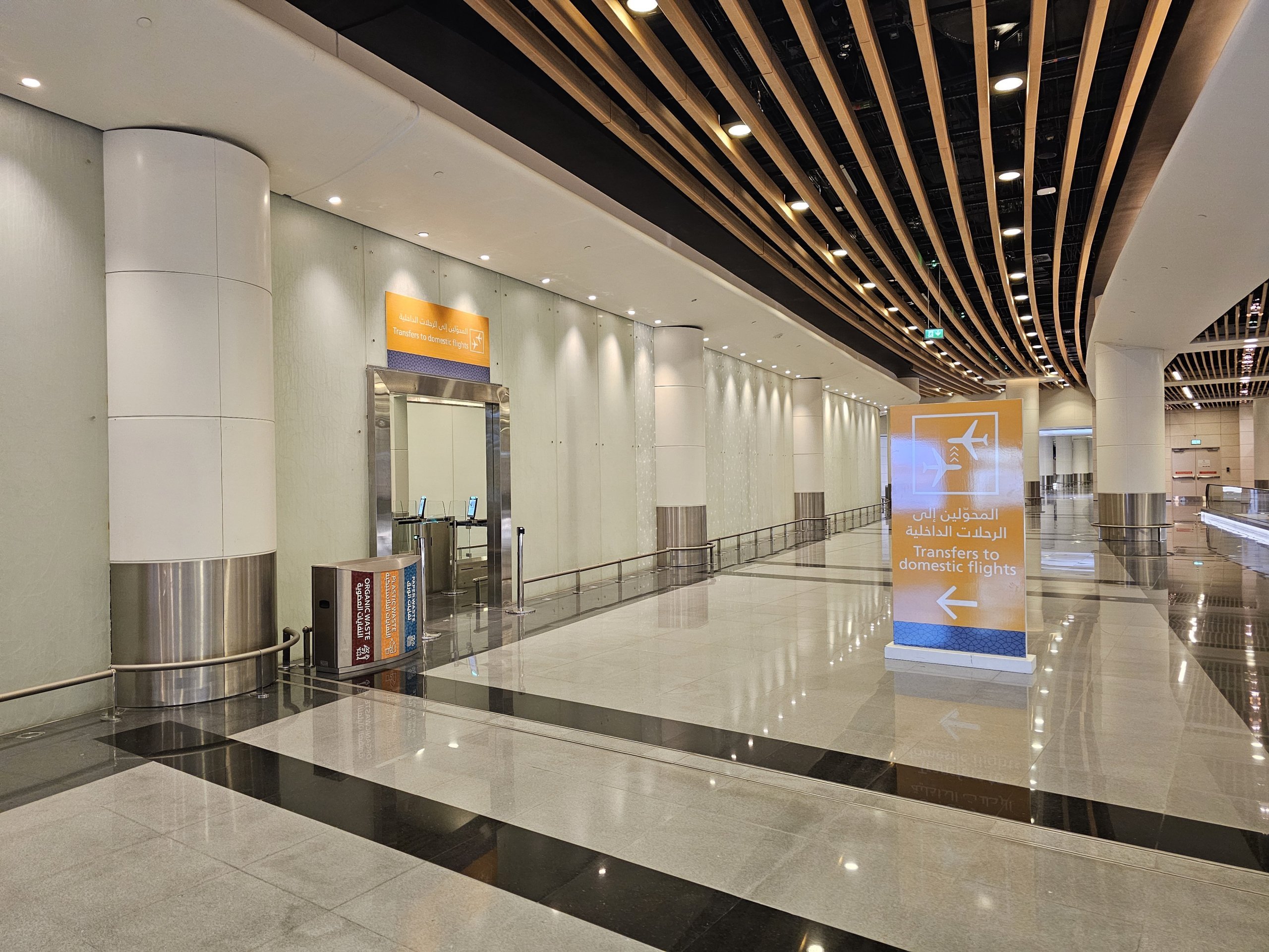 Følg skiltene "Domestic Transfers", som tar deg til en spesiell pass- og sikkerhetskontroll kun for transferpassasjerer.