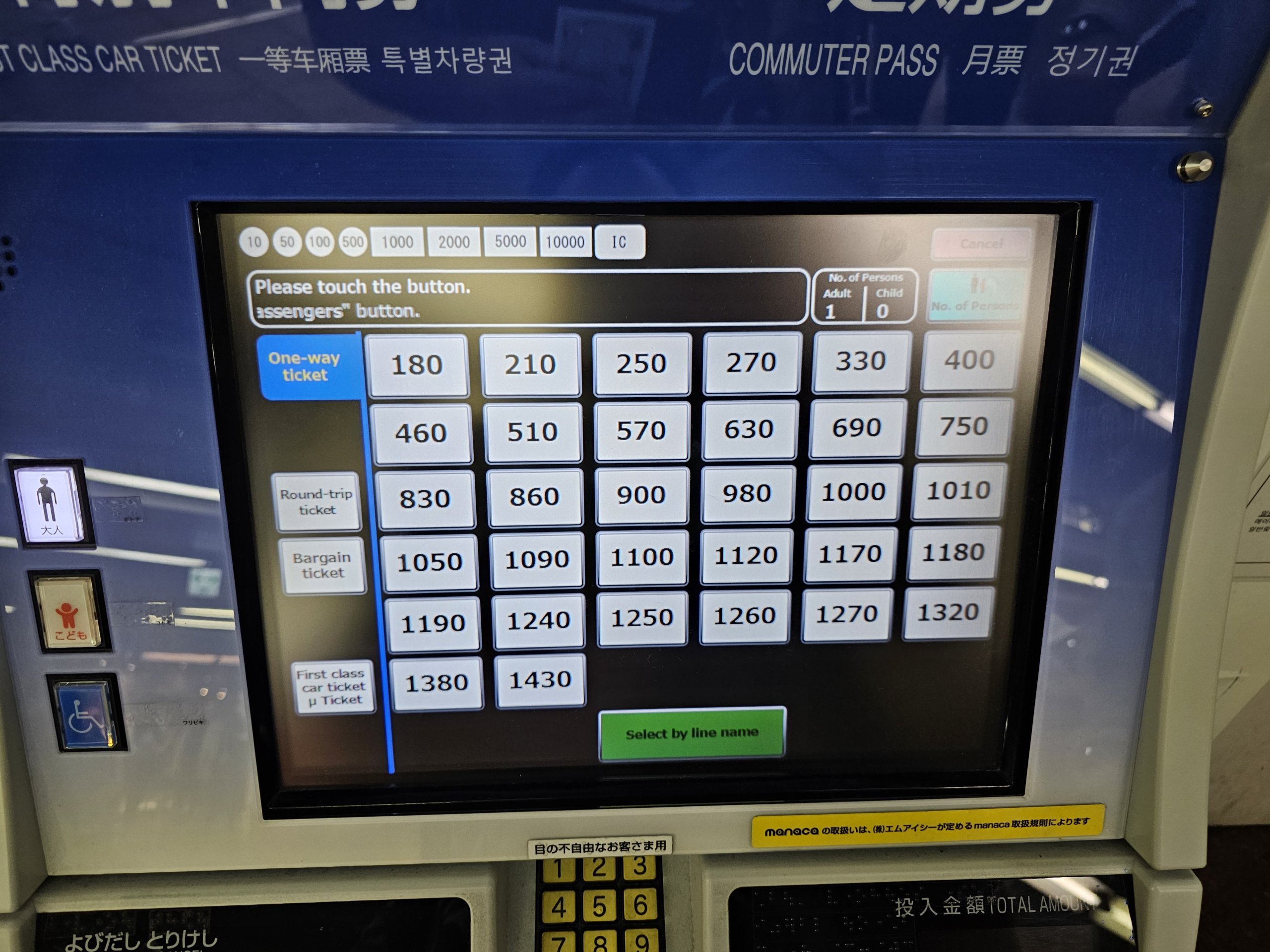 En billett på Kanayama stasjon i den sørlige delen av sentrum koster 910 jpy.