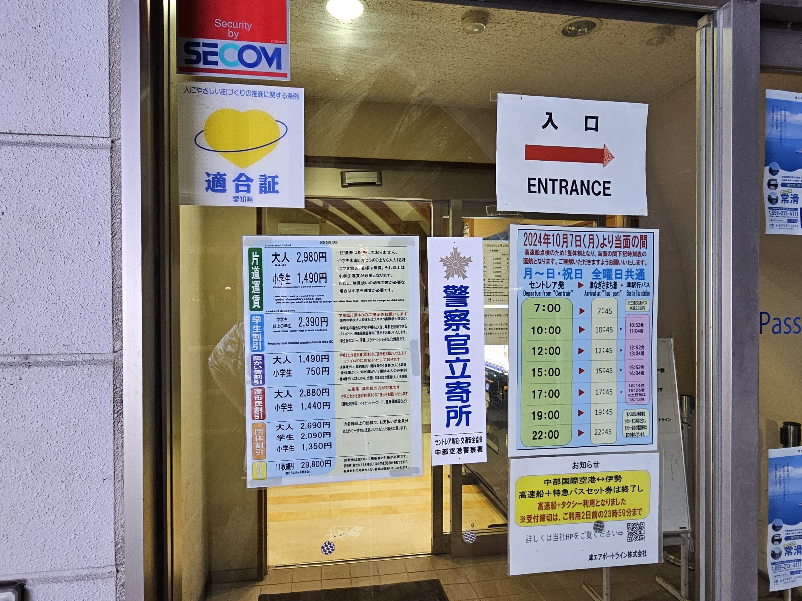 På vei fra flyplassen går det tog to ganger i timen på ettermiddagen, men kun til Otagawa stasjon i de sørlige forstedene til Nagoya.