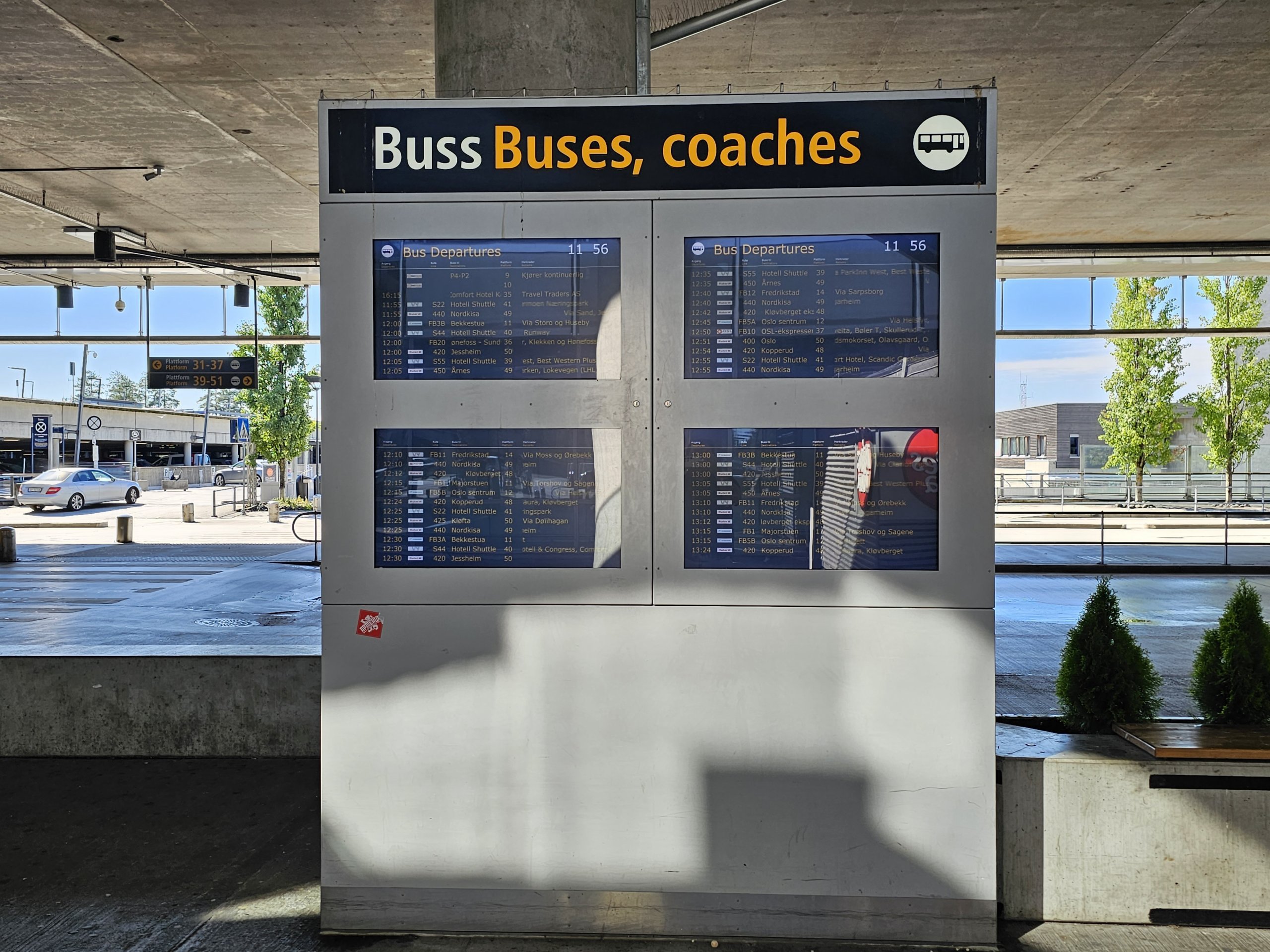 Bussene stopper rett foran terminalen, og du kan finne den spesifikke plattformen på den elektroniske tavlen.