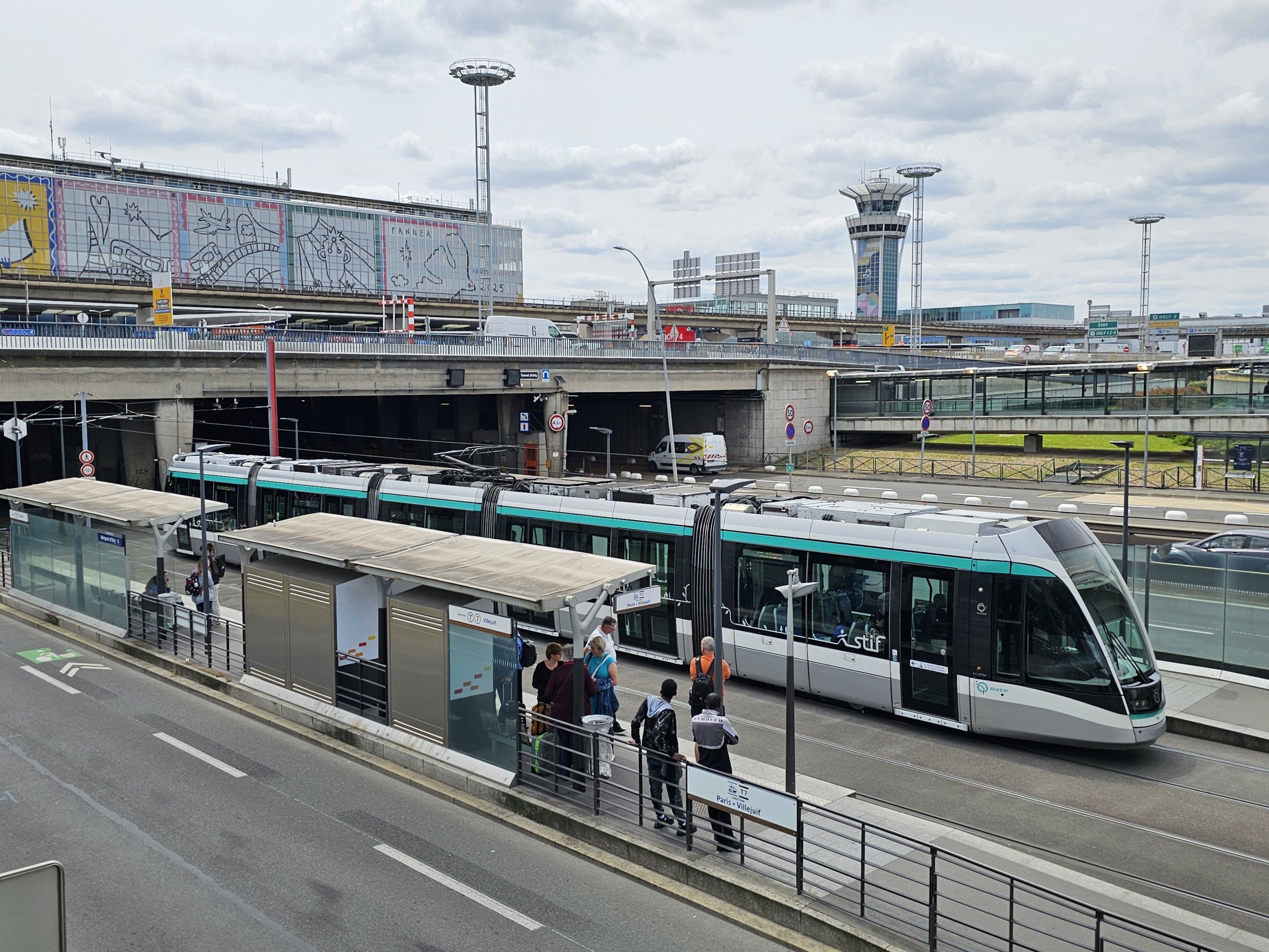 Du finner trikkeholdeplassen i undergrunnen i terminal 4. Hvis du ankommer terminal 1, kan du bruke det automatiske OrlyVal-toget mellom terminalene for å komme deg til den sørlige terminalen. Fra terminal 2 og 3 er det en raskere spasertur (ca. 10-15 minutter).