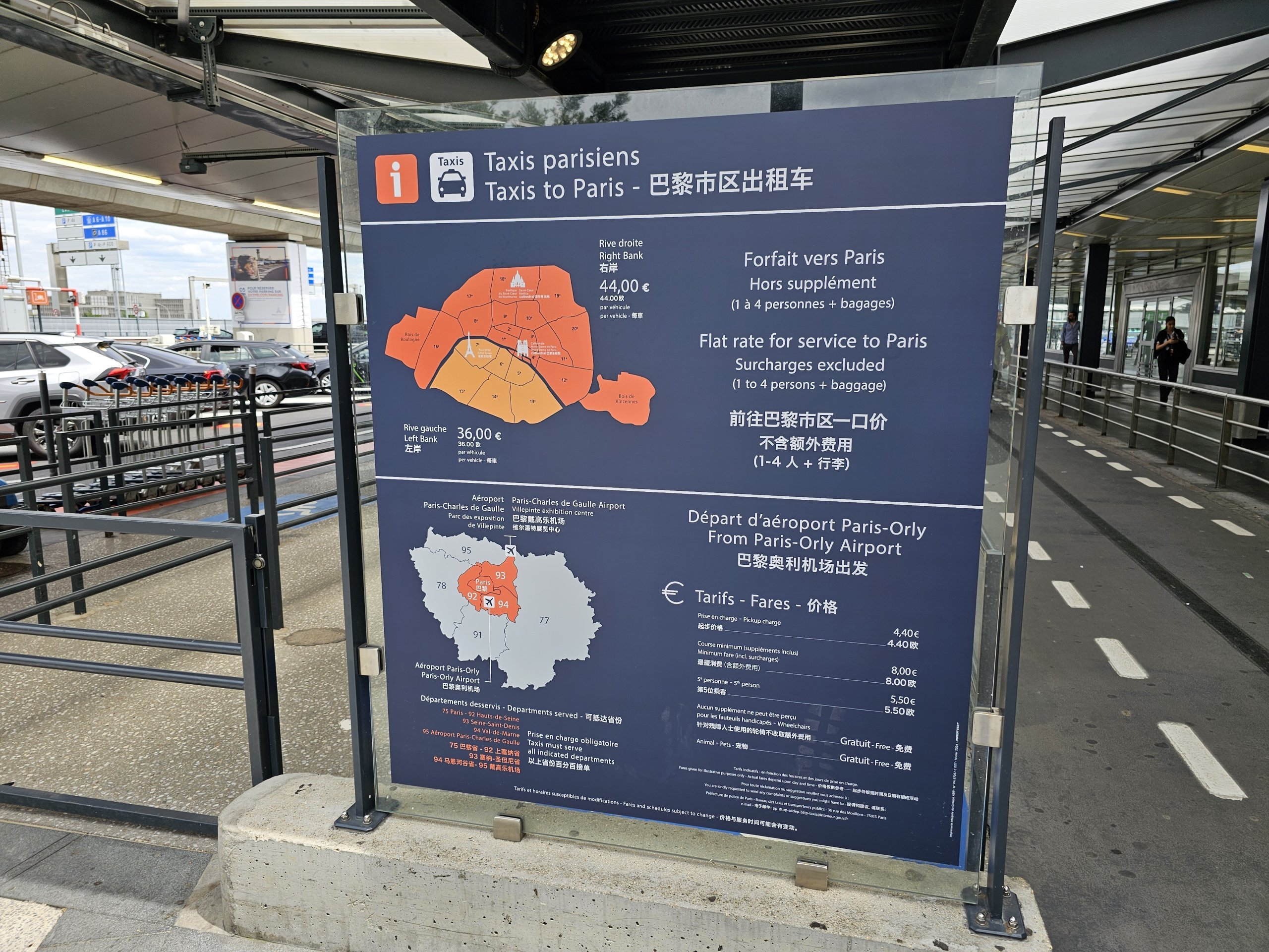 Drosjepriser til CDG lufthavn beregnes etter taksameteret, og avhengig av trafikken betaler du mellom 75 euro og 85 euro.
