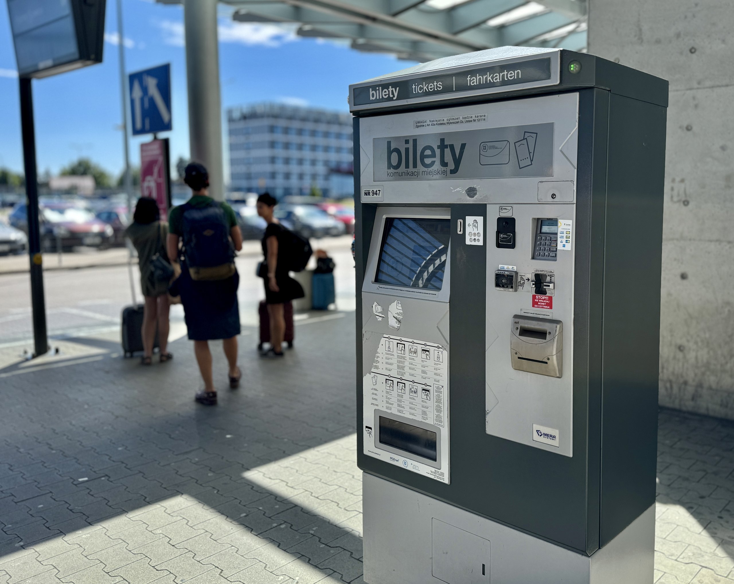 For å komme deg fra flyplassen til sentrum kan du bruke en 45-minutters billett til 7 zloty, eller du kan kjøpe en 24-timers billett til 15 zloty.