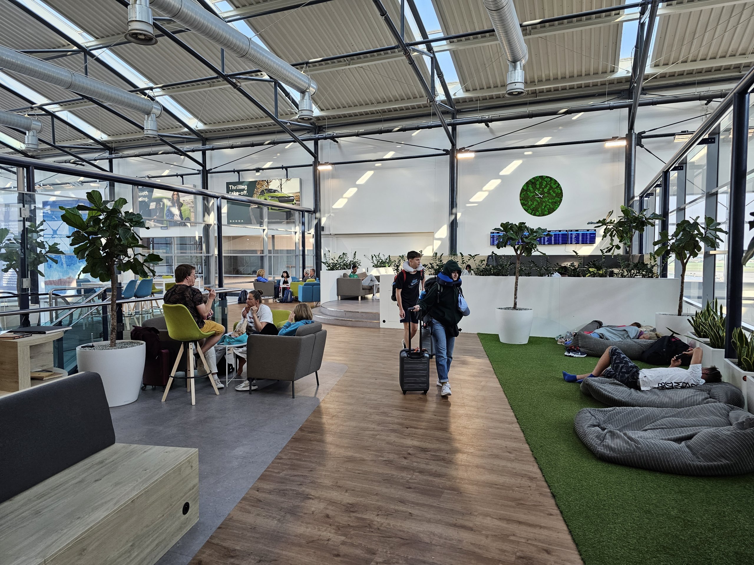 Len deg tilbake i de komfortable lenestolene, bruk kaffemaskinen og nyt omgivelsene atskilt fra folkemengden i hovedkorridorene.