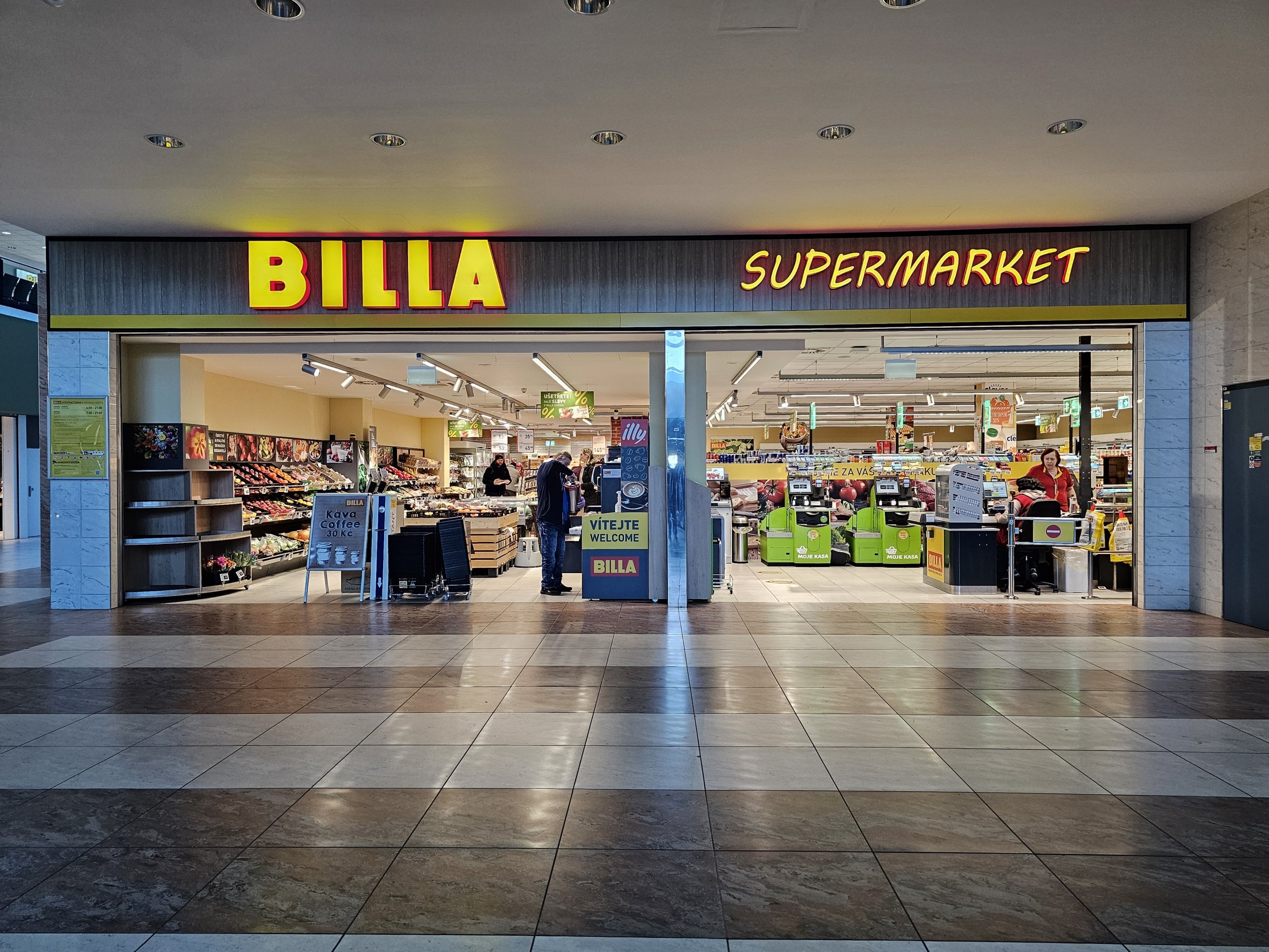 I første etasje i terminal 2 i det offentlige området finner du et klassisk Billa-supermarked med vanlige priser. Butikken er et kjærkomment alternativ til de overprisede gatekjøkkenene.