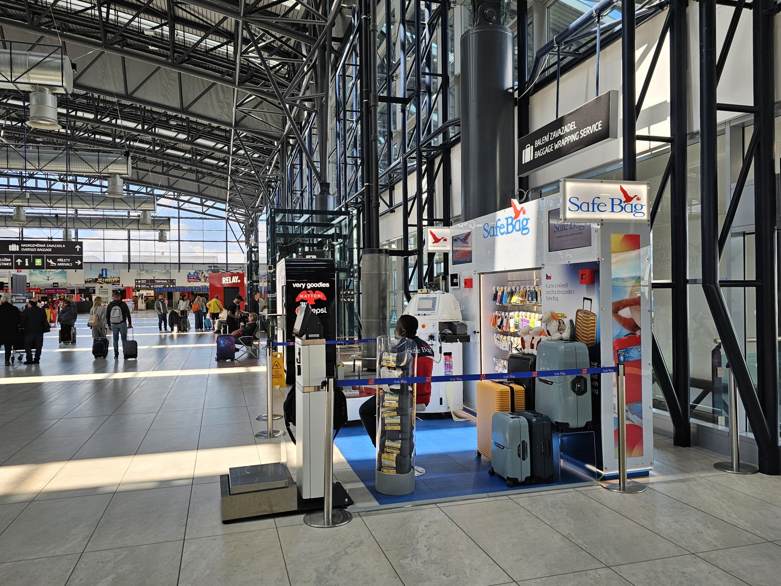 SafeBag tilbyr bagasjepakking ved innsjekkingsskrankene i begge terminalene.