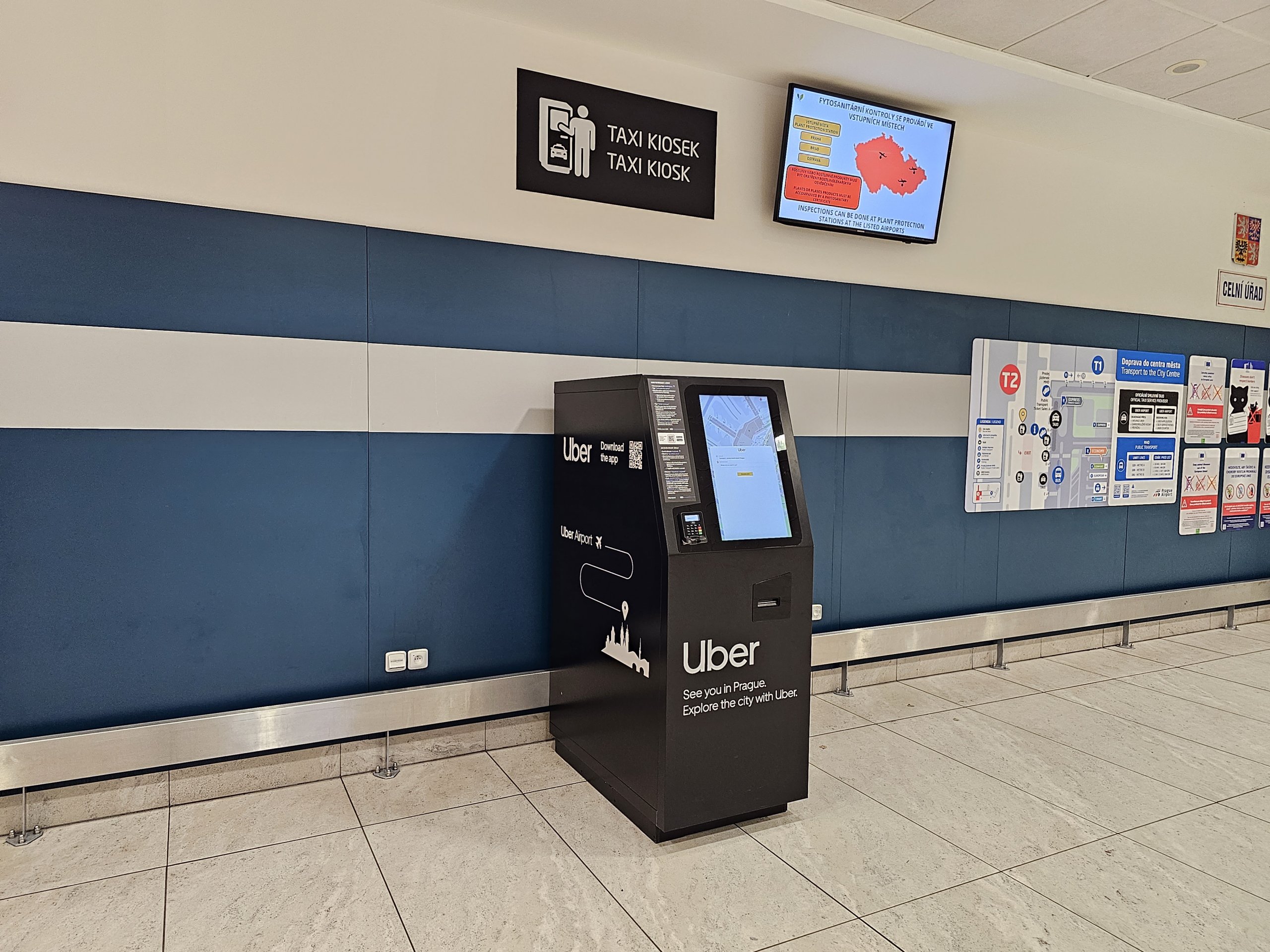 Du kan praie en taxi via UBERs mobilapp eller ved automaten i ankomsthallen (bagasjeutleveringsområdet).