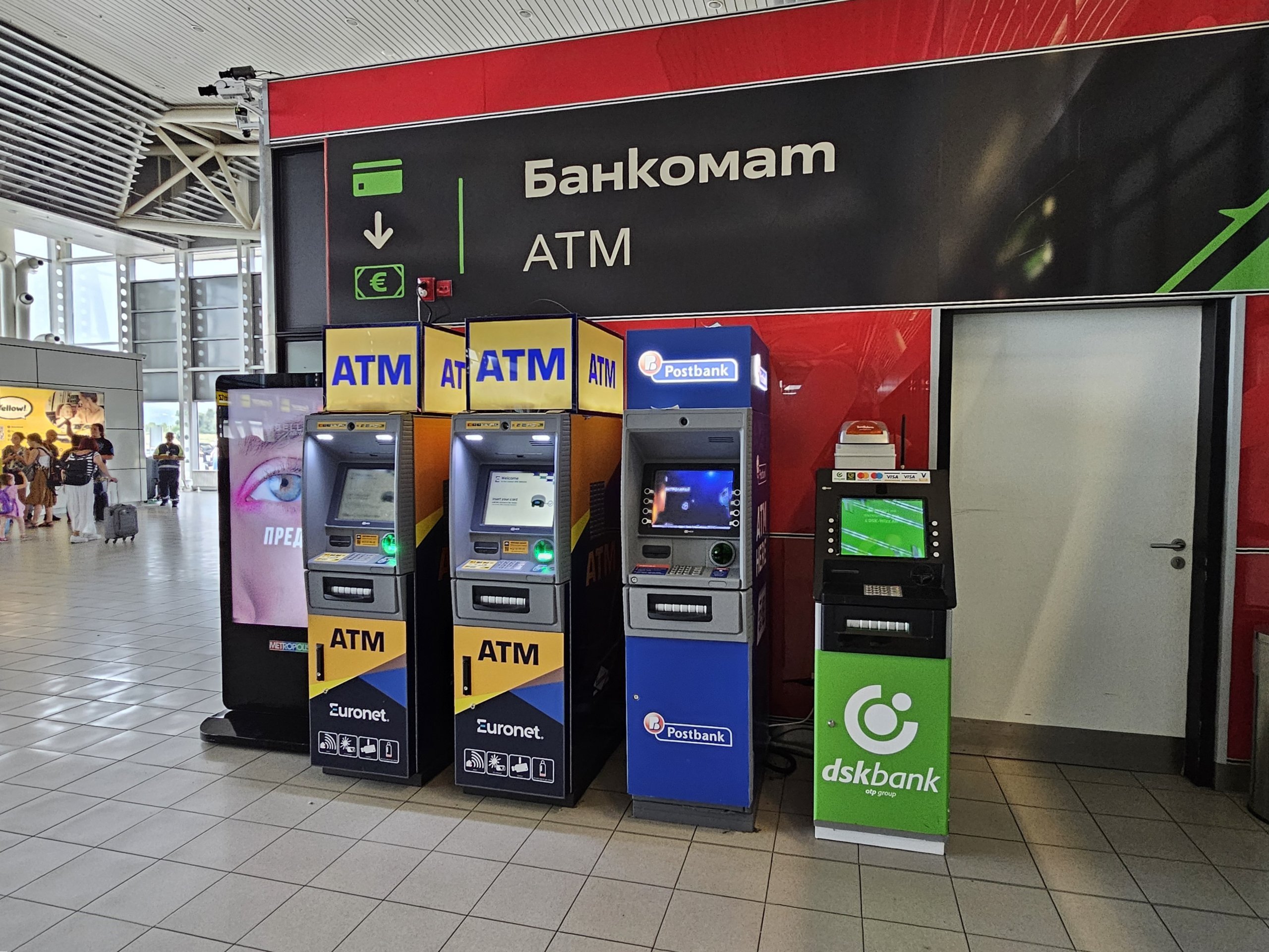 - Euronet minibank (terminal 2) - uttaksgebyr ca. 5 bgn og svært ugunstig vekslingskurs
