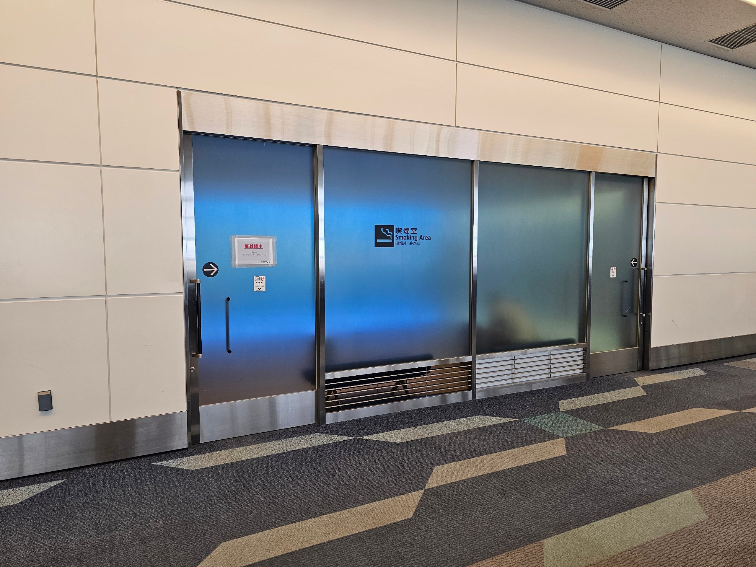 Alle terminaler er utstyrt med flere lukkede røykerom, inkludert et område etter sikkerhetskontrollen.