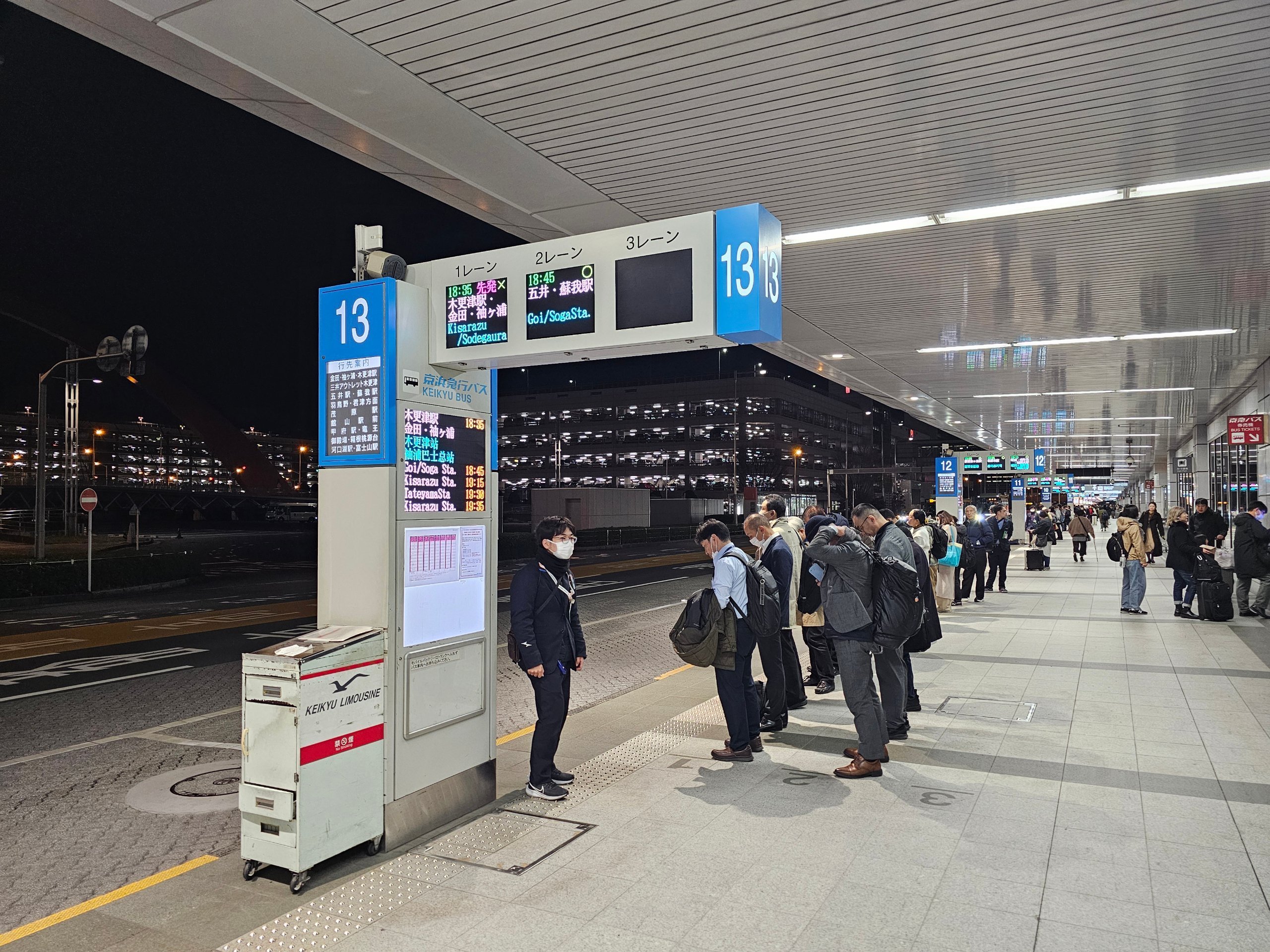 - Siste tog fra flyplassen - 23:48 til Shinagawa stasjon; 0:10 til Keikyu-Kamata stasjon (avgangstider fra terminal 3 er alltid 2 minutter senere)