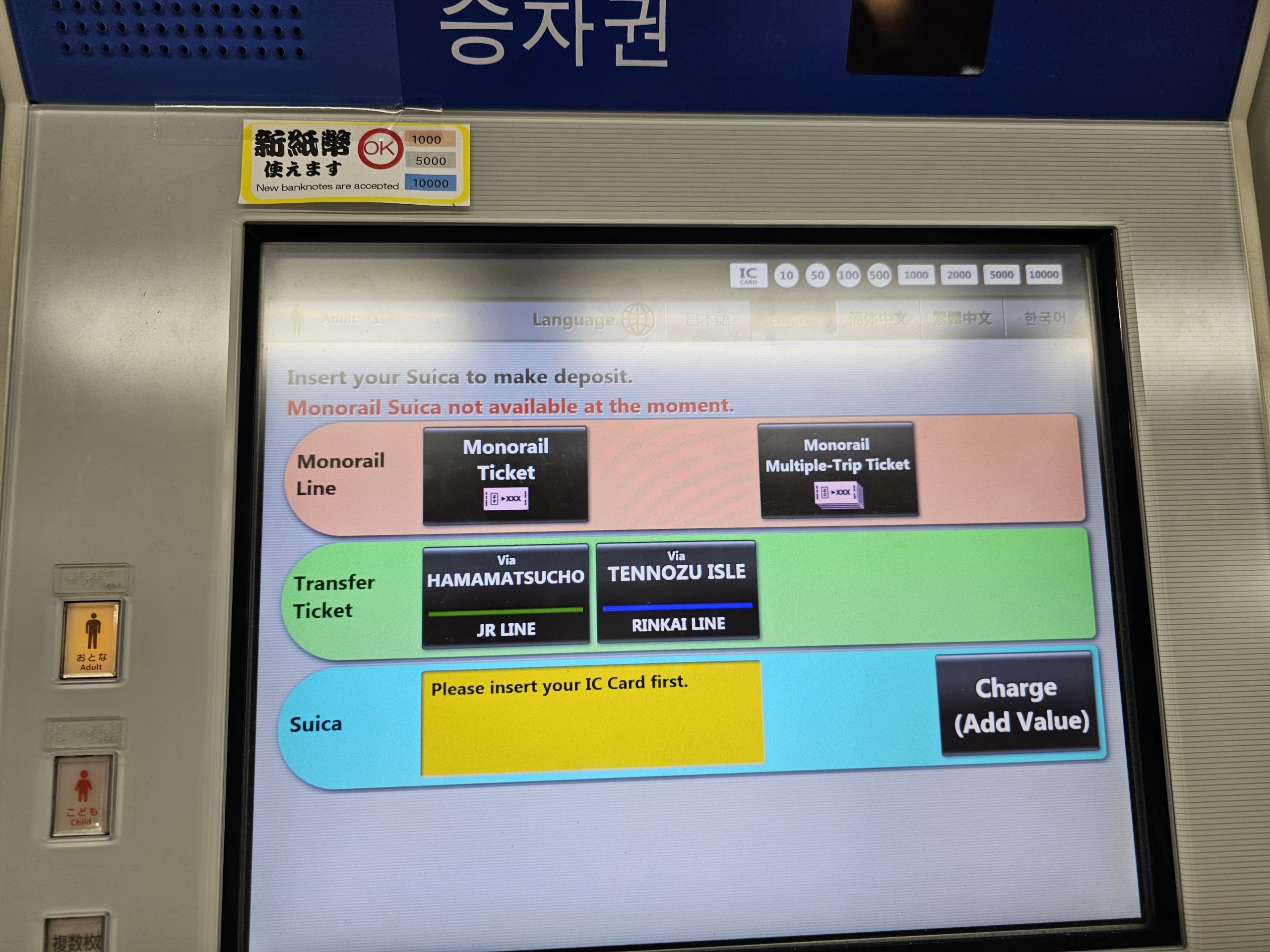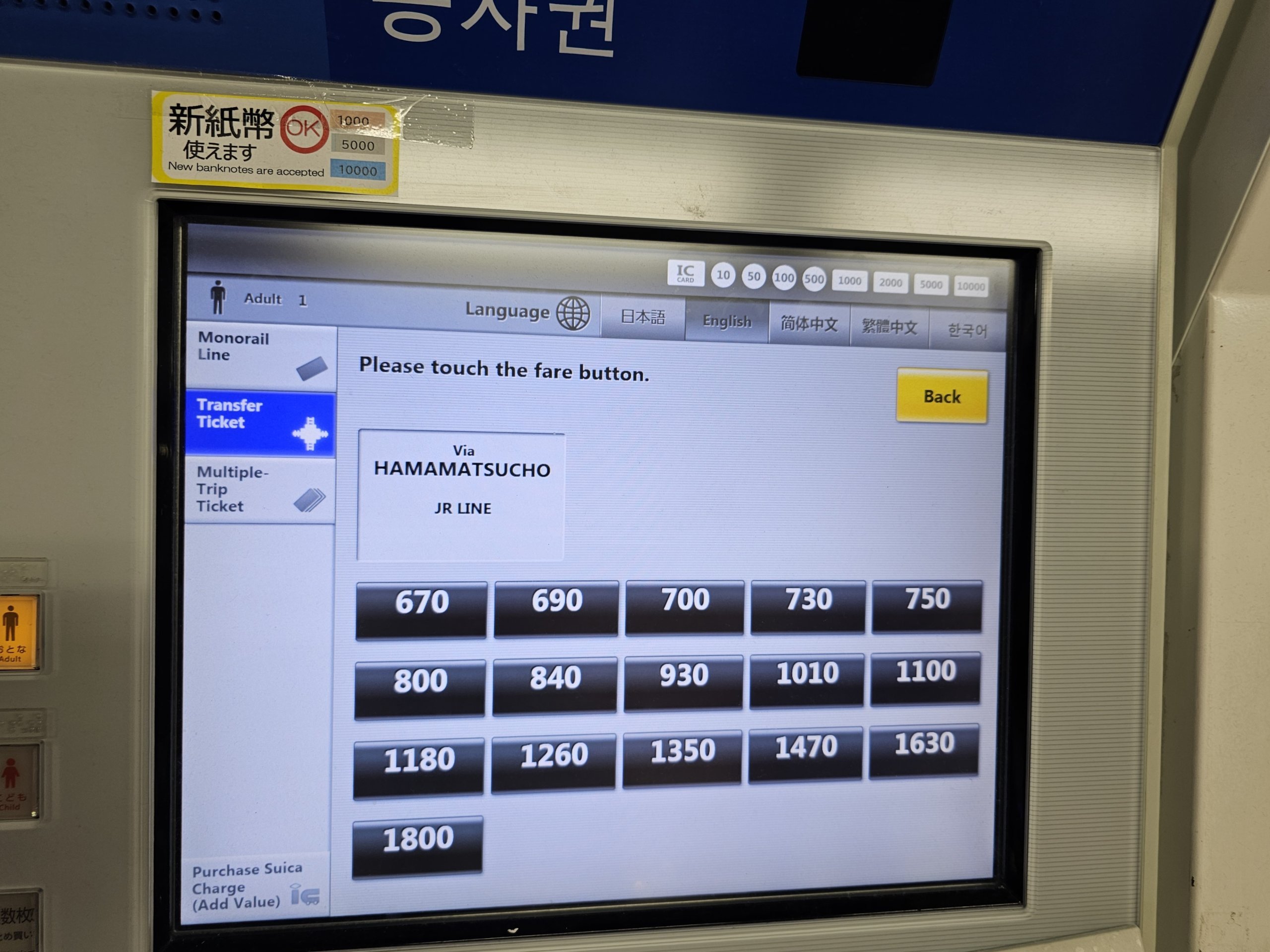 Hvis du betaler med japanske transportkort, trenger du ikke å kjøpe billett i automaten. Du trenger bare å feste kortet til turnstilen når du går inn og ut av perrongen.