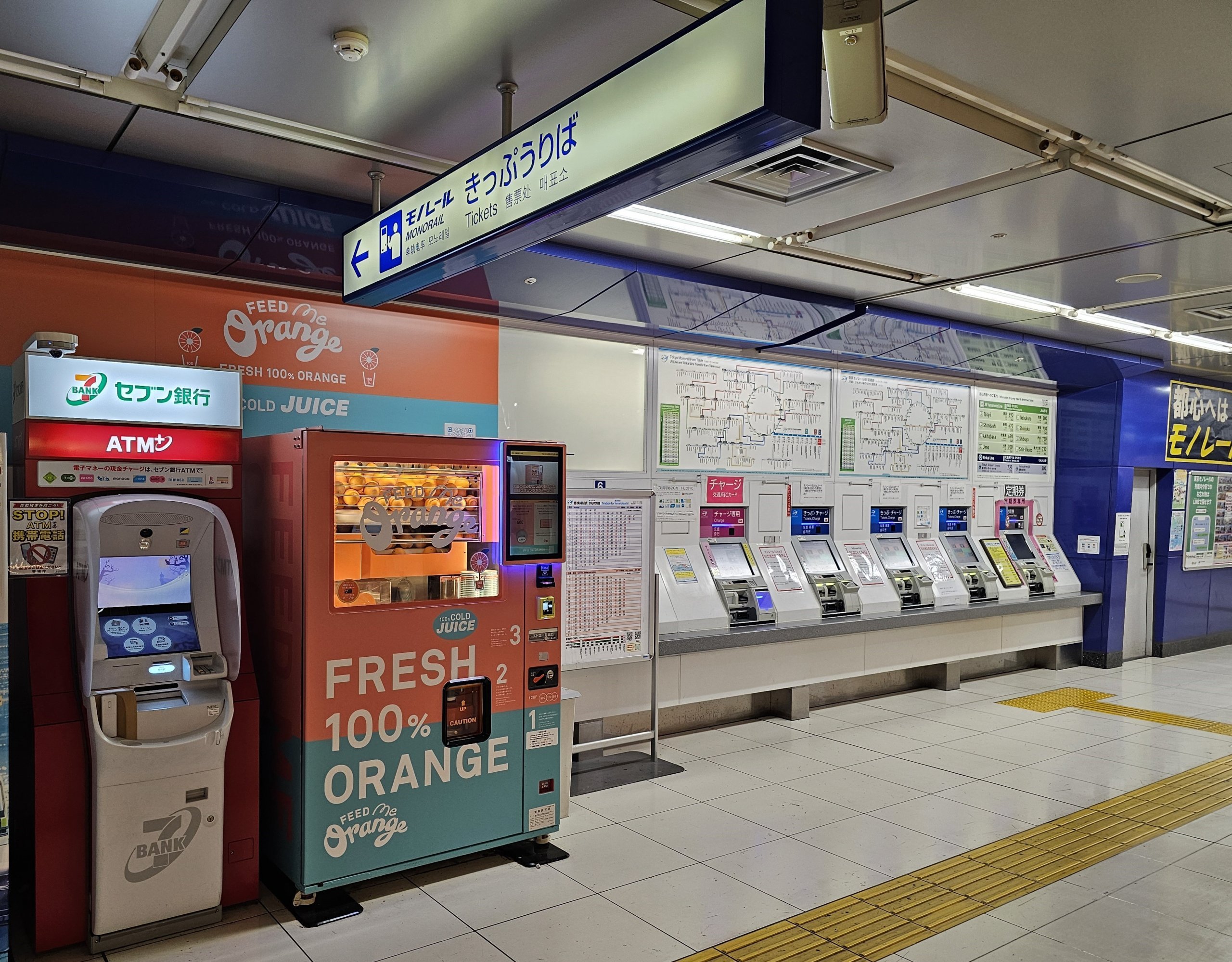 Automatene kan brukes til å betale med kontanter eller japanske transportkort (f.eks. Suica, Icoca og andre). Du kan ikke betale med vanlige kontaktløse kort i automatene, men det finnes en minibank ved siden av.