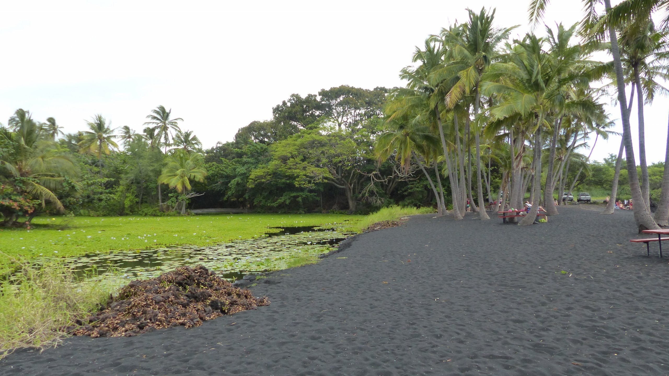 En hel sentral del av stranden med palmer som gir behagelig skygge, skiller havet fra dammen med de stadig blomstrende vannliljene, som er et herlig beroligende sted. Det bidrar til den avslappende atmosfæren på Black Sand Beach, hvor du kan tilbringe en hel dag i fred og ro.