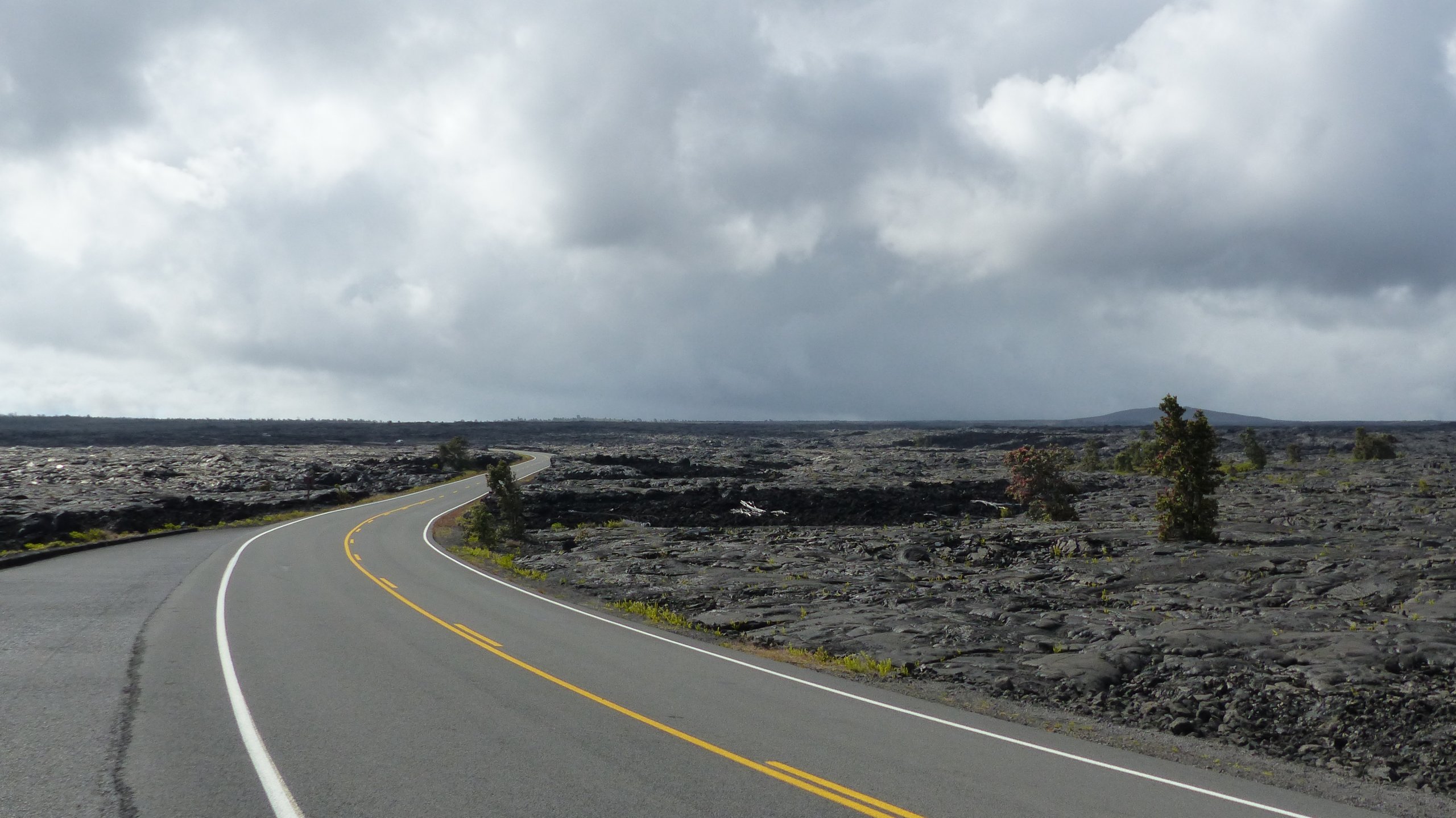 Hovedveien slynger seg gjennom Volcanoes National Park i 35 km, stiger mer enn 1200 høydemeter og tar deg gjennom et utrolig vulkansk landskap med alt fra aktive kratere til dusinvis av mindre utdødde kratere, lavafelt med størknet svart materie, utrolig utsikt fra høye klipper til havet og taggete kystlinjer dannet av raskt størknende lava som skaper ekstraordinære formasjoner.