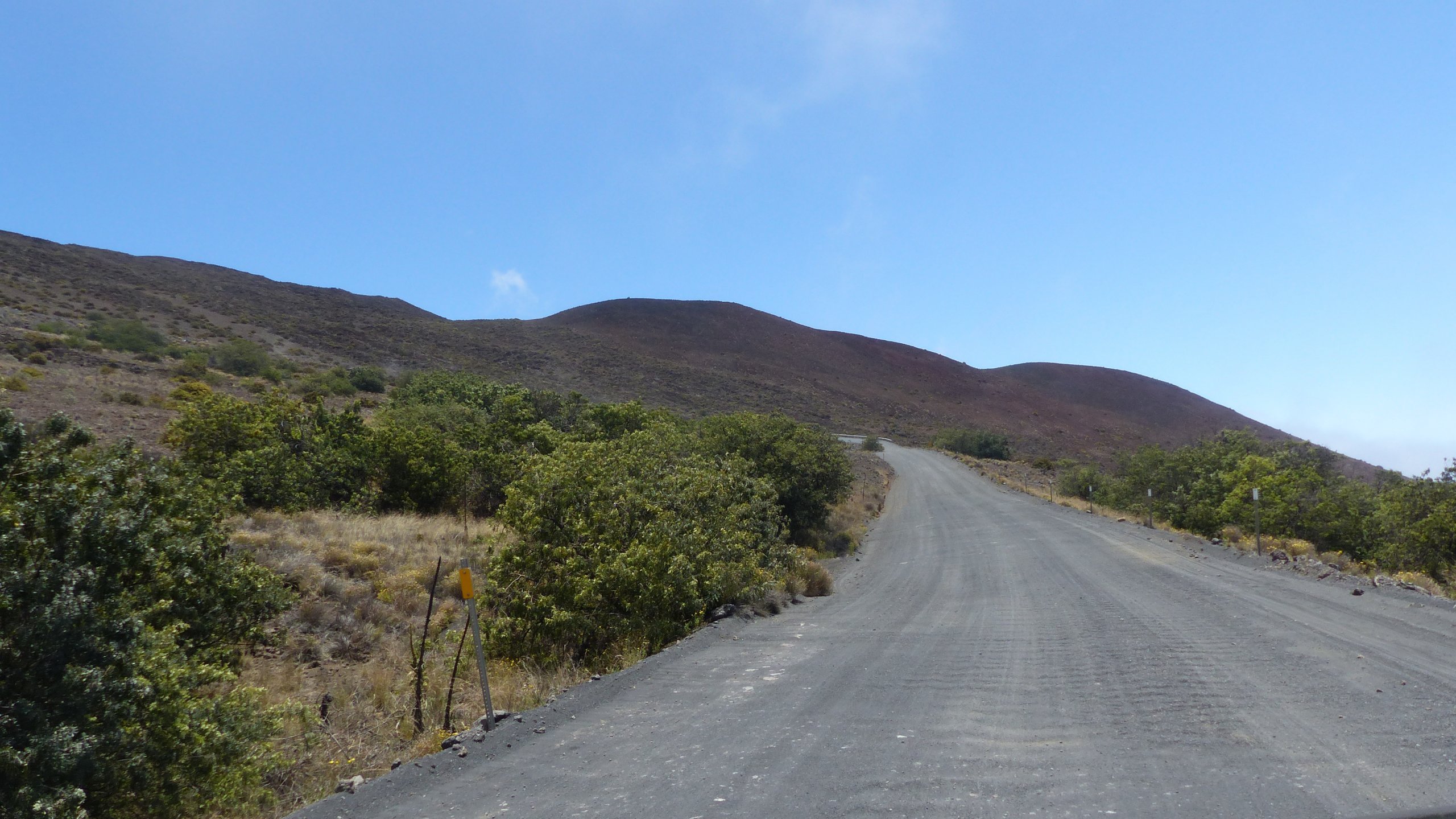 Fra besøkssenteret er det en 8 km lang strekning med grusvei, men den er bred nok og godt merket, og så kjører du opp til toppen igjen på asfalt av god kvalitet.