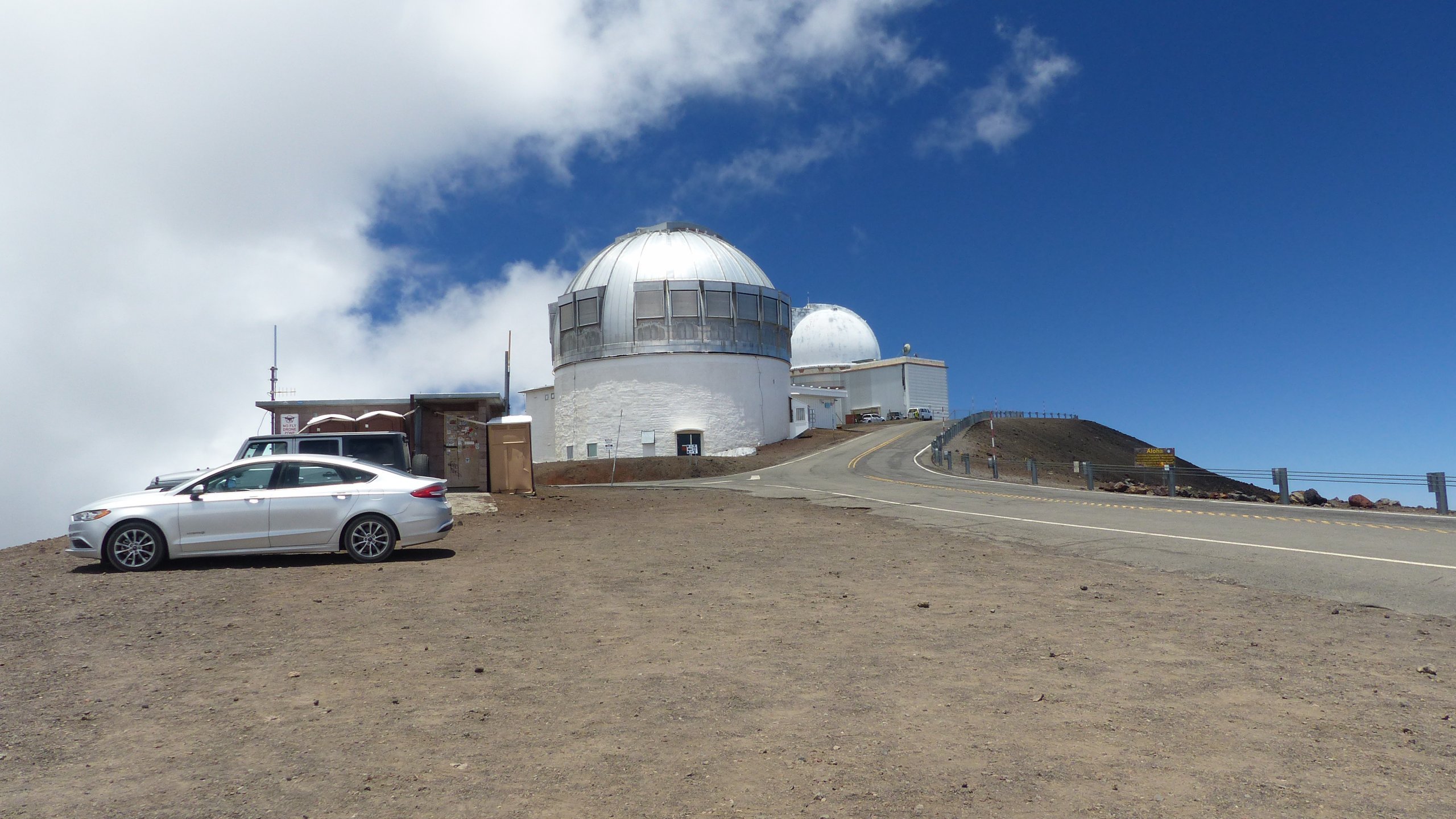 Parkeringsplassene ligger spredt langs observatoriene, som imidlertid ikke ligger på det aller høyeste punktet på fjellet. For å komme dit må du gå en veldig kort sti på under en kilometer.