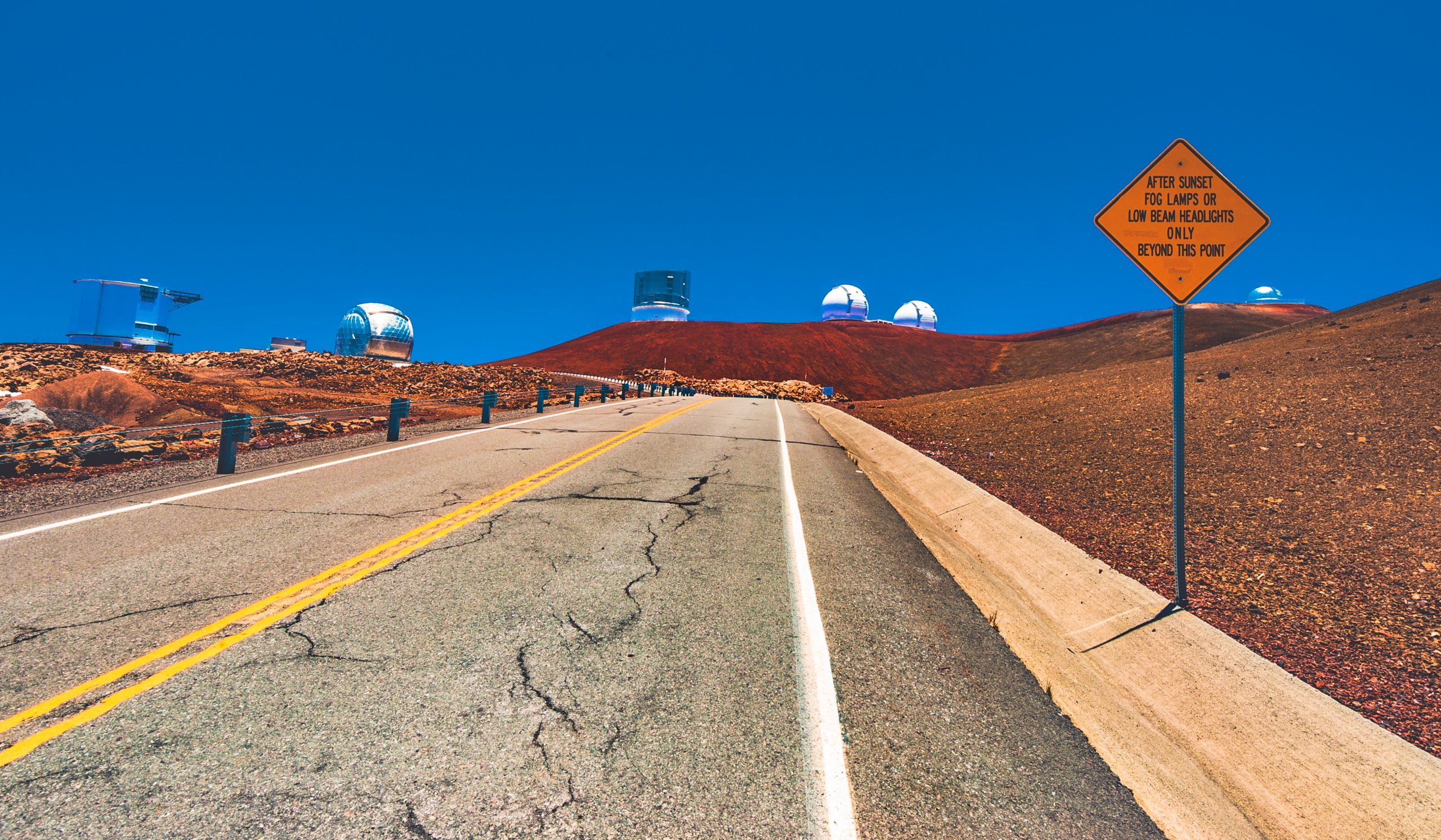 Dette er imidlertid ikke så vanlig, og du vil vanligvis bare støte på snøfelt utenfor veien, som vedlikeholdes for at personalet skal ha tilgang til observatoriene.