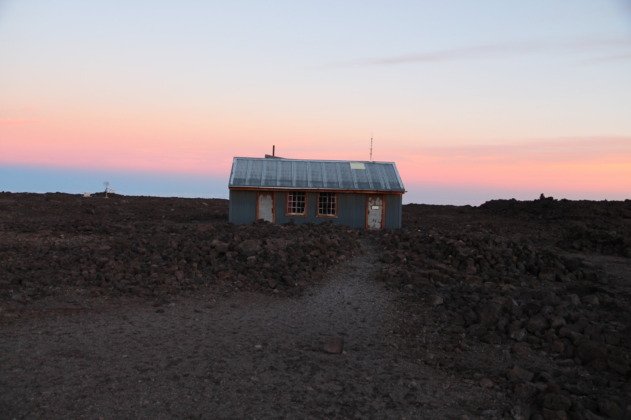 Herfra går en sti kalt Observatory Trail gjennom et månelandskap av grov, størknet lava som tar deg til toppen. Først kommer du til Summit Cabin, et lite turistherberge med ett rom og køyesenger som ligger bare noen hundre meter fra det fantastiske krateret som er fylt med svart, fast lava.