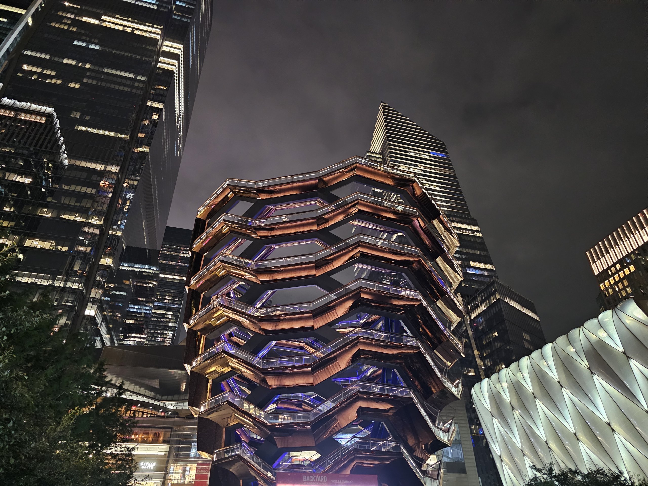 Om natten er det indre av Vessel avstengt, men hele strukturen er vakkert opplyst, noe som gjør det verdt å ta turen hit etter mørkets frembrudd.
