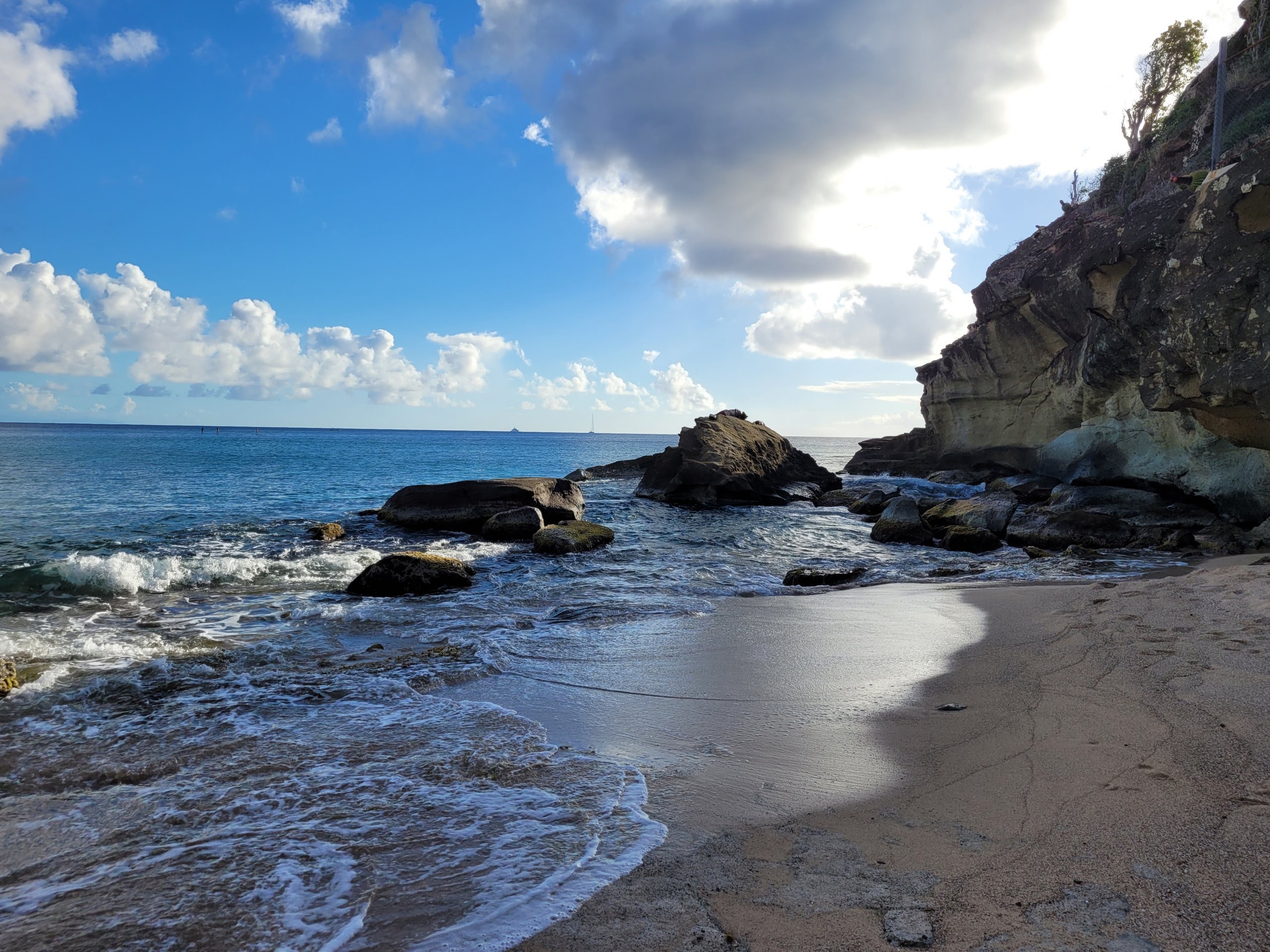 Hvis du blir lei av Pigeon Point Beach med sin livligere atmosfære på land, men rolige sjø, kan du gå ca. 5 minutter herfra gjennom et inngjerdet boligområde til den helt annerledes Windward Beach.