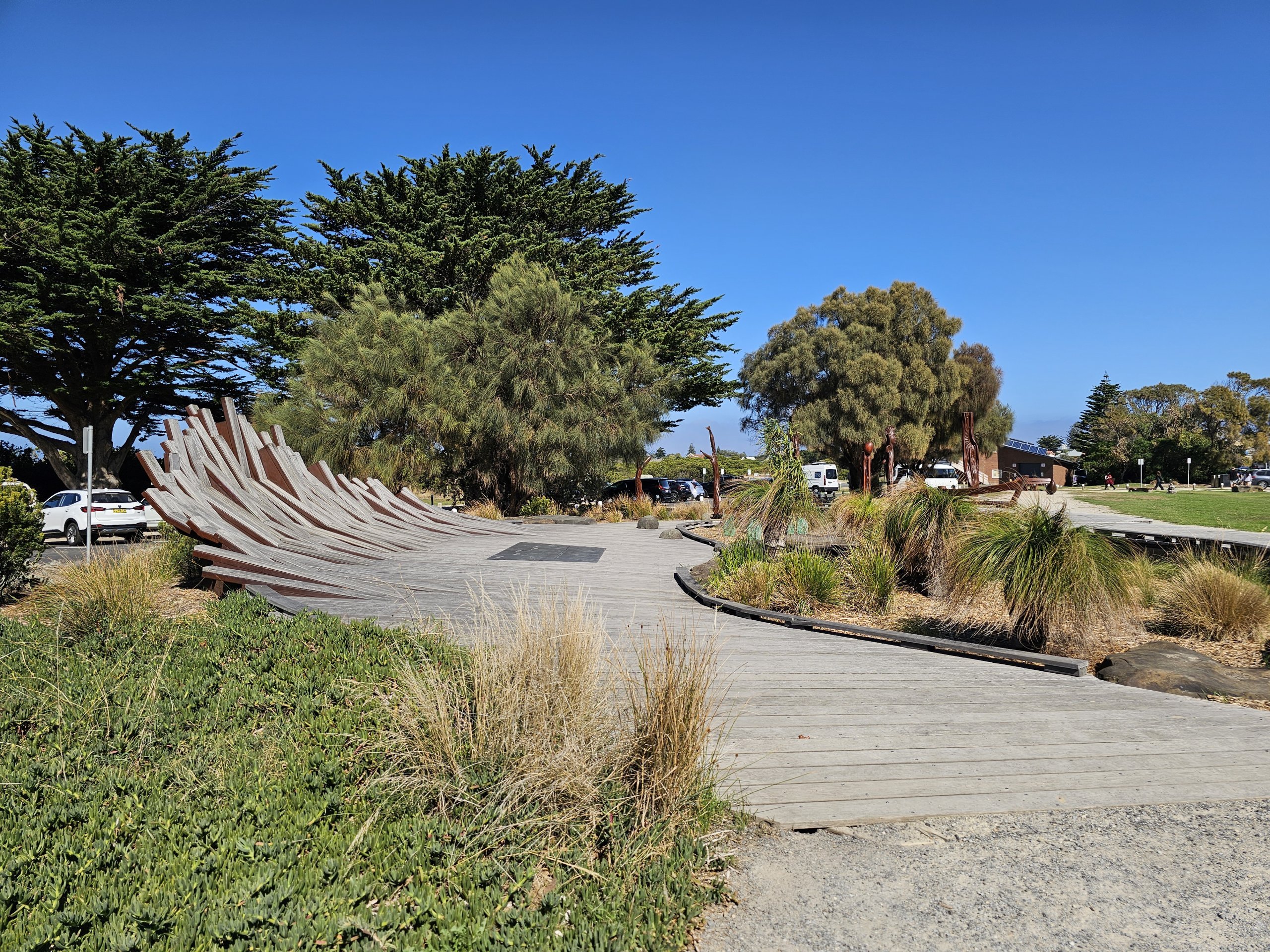 Den er adskilt fra hovedgaten i byen med et bredt grøntbelte, slik at trafikkstøyen ikke kommer i veien, men samtidig er du i sentrum av Apollo Bay på bokstavelig talt et halvt minutt til fots.