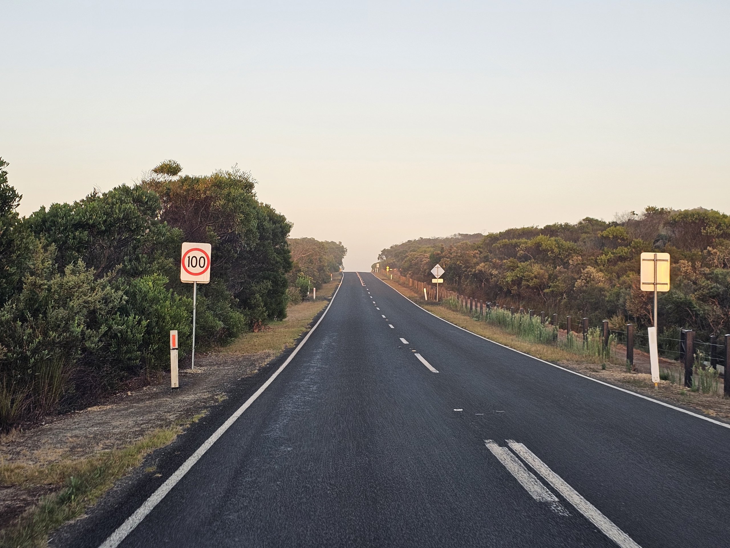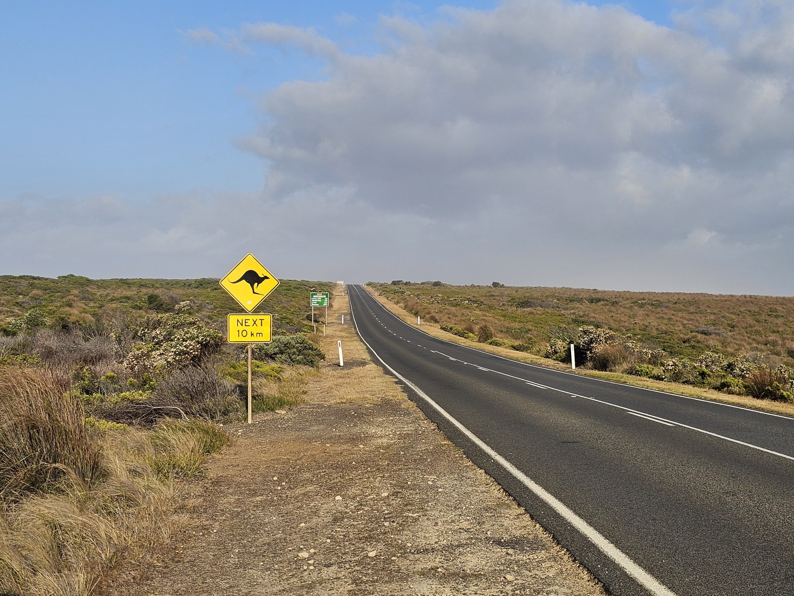 Den største risikoen er kenguruer, som det er mange av i området. De dukker opp på veien uten forvarsel, og den største risikoen er om natten og tidlig på kvelden.