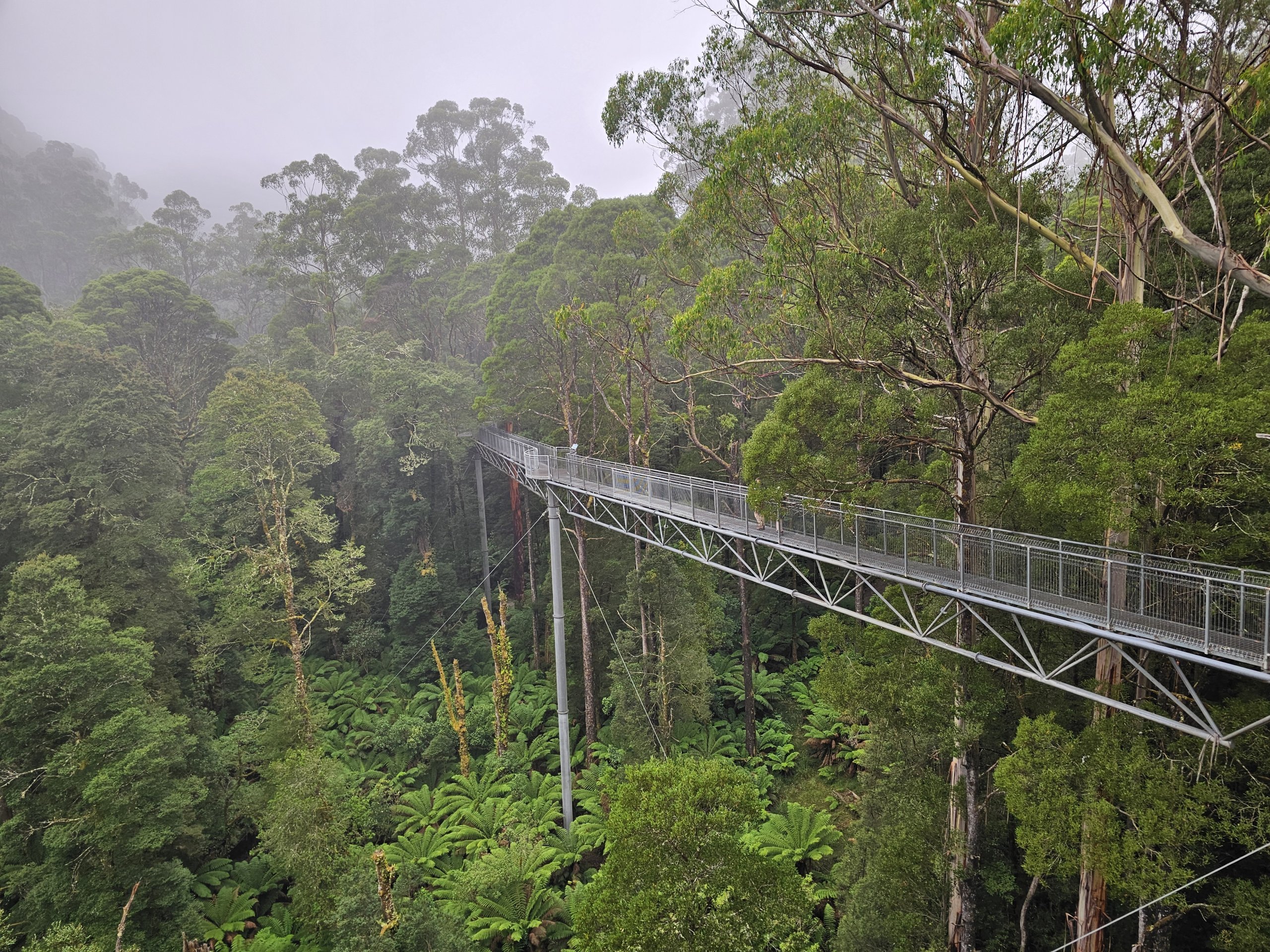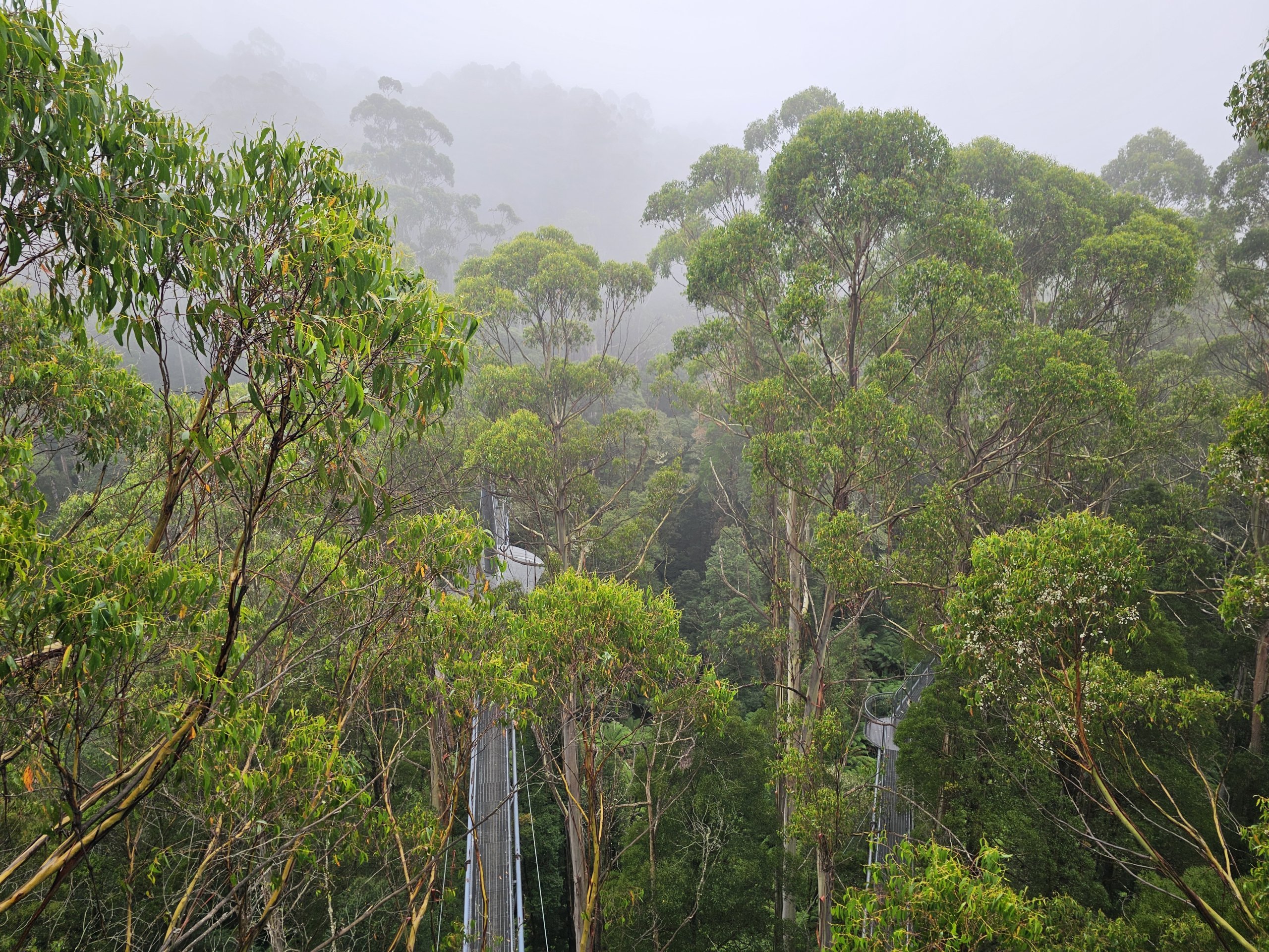 Nyt utsikten i fugleperspektiv over de majestetiske trærne i den tempererte jungelen, og ta på grenene til de ruvende eukalyptustrærne i toppen av kronene deres.