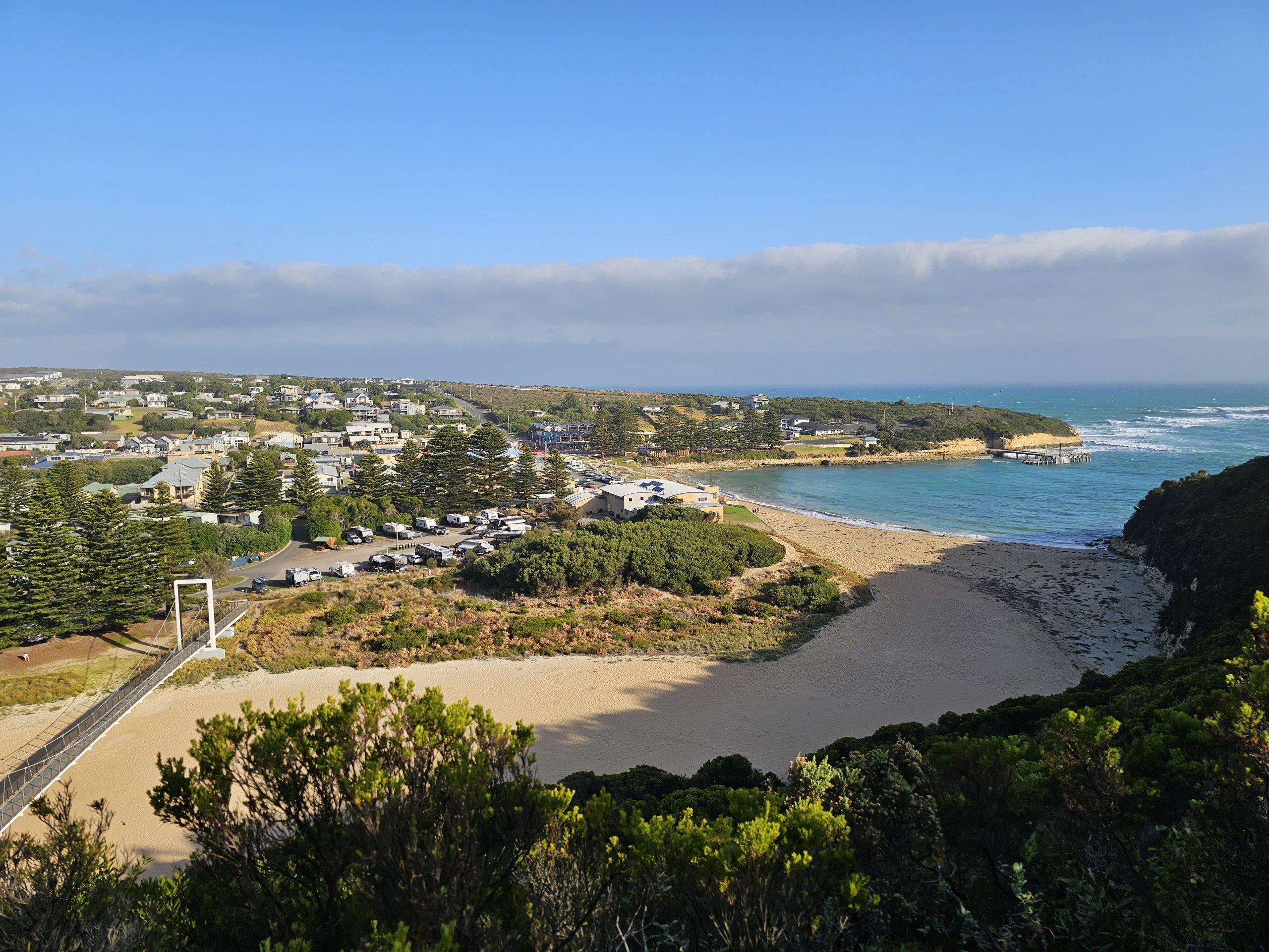 Det er et nydelig utsiktspunkt over byen på veien mot Warrnambool, som også kan nås til fots via en hengebro og noen trappetrinn.