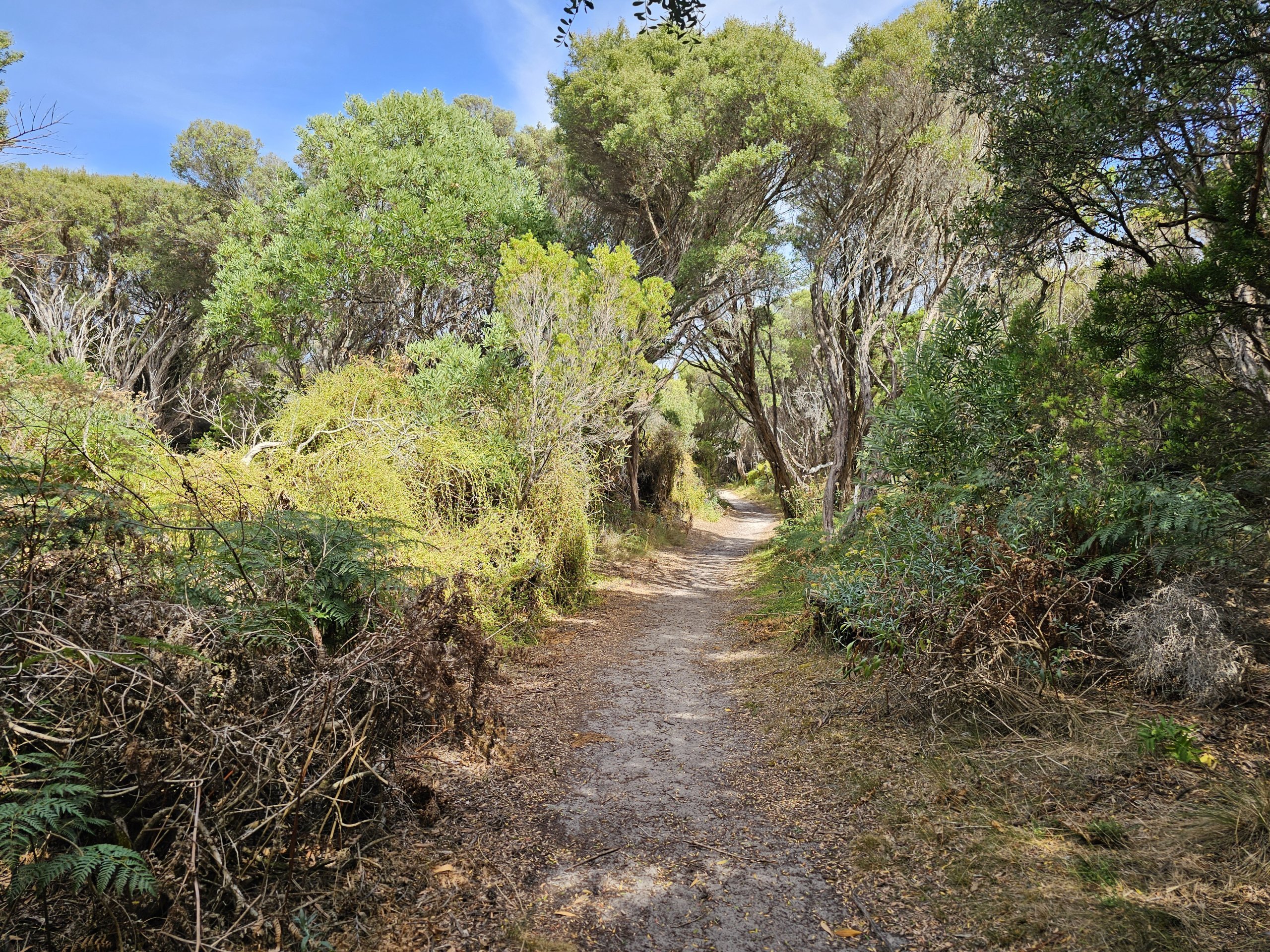Fra den lille parkeringsplassen går det en svært behagelig sti på ca. 650 meter gjennom skogen.