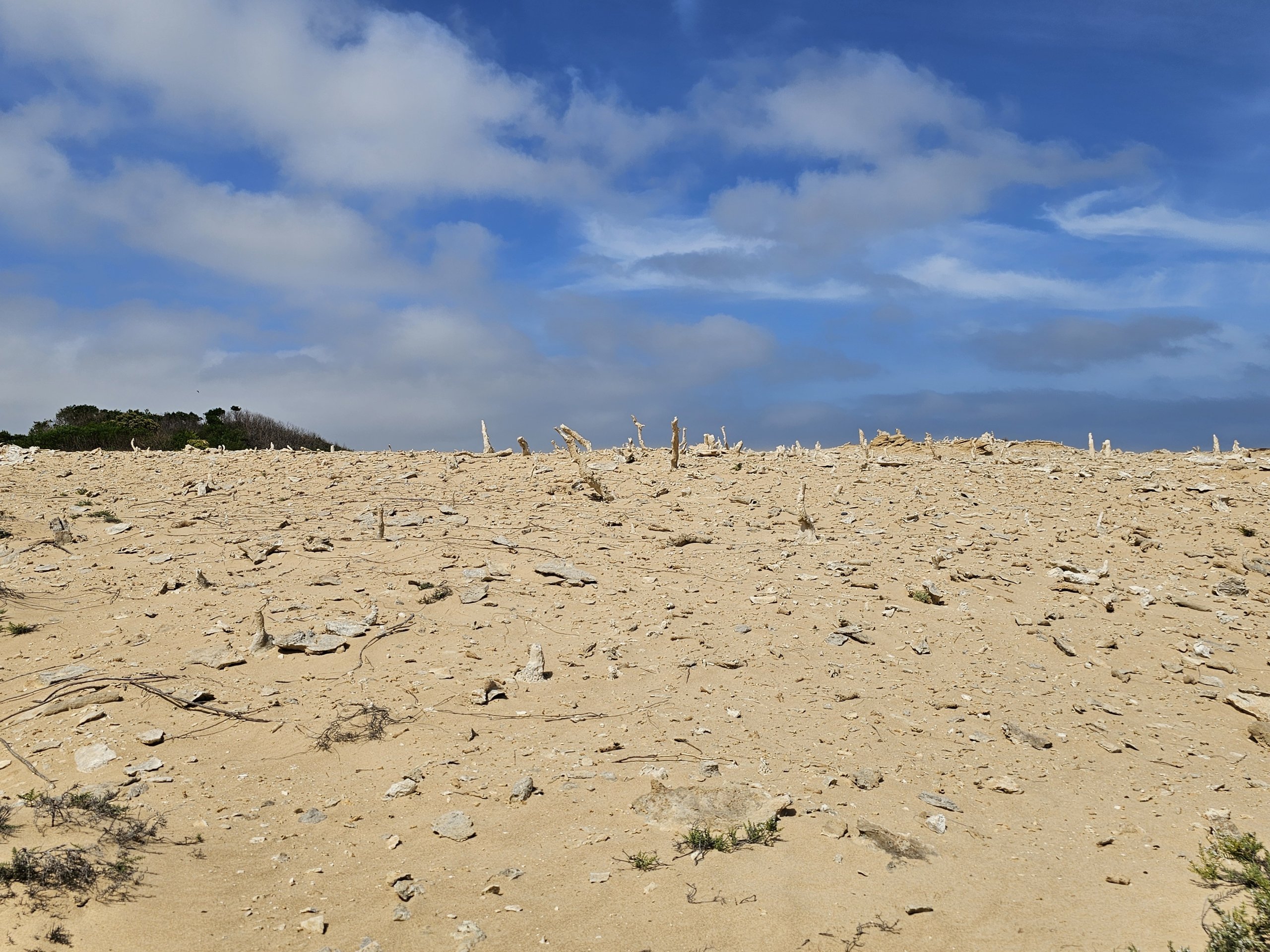 Kalkskogen, som er full av klippeformasjoner med særegne former, ligger i en liten ørken på ca. 200 x 200 meter.