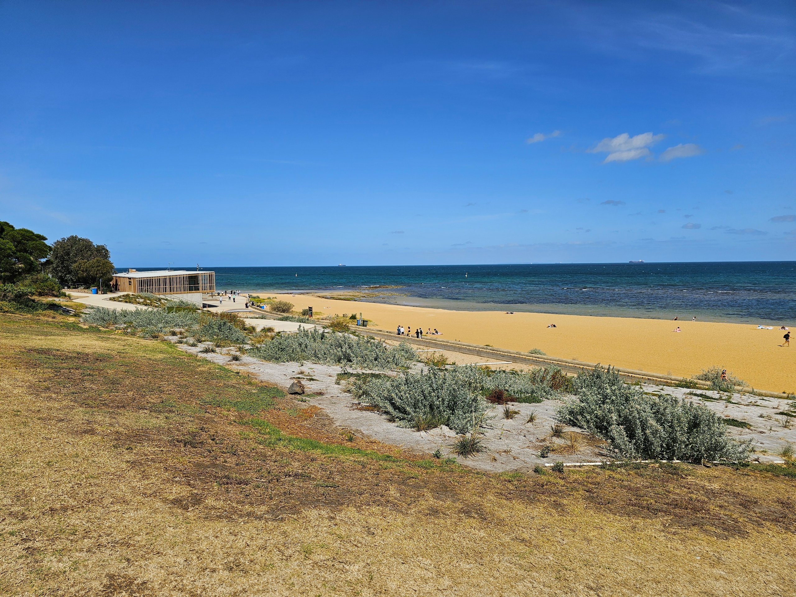 Brighton Beach er også et populært sted for bading i havet. Den nordlige enden er svært bred og romslig, og stranden er dekket av fin, lys sand.