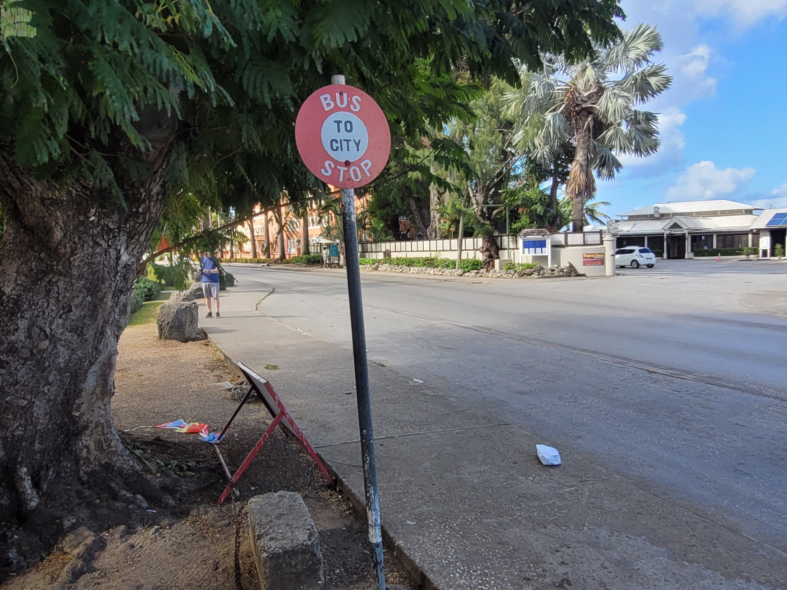 Hvert busstopp er merket med et "TO CITY"- eller "OUT OF CITY"-skilt. Du kan derfor se hvilken retning bussen kjører fra holdeplassen ved hjelp av skiltet. Med "City" mener vi hovedstaden Bridgetown, ettersom det er dit de aller fleste avgangene går.