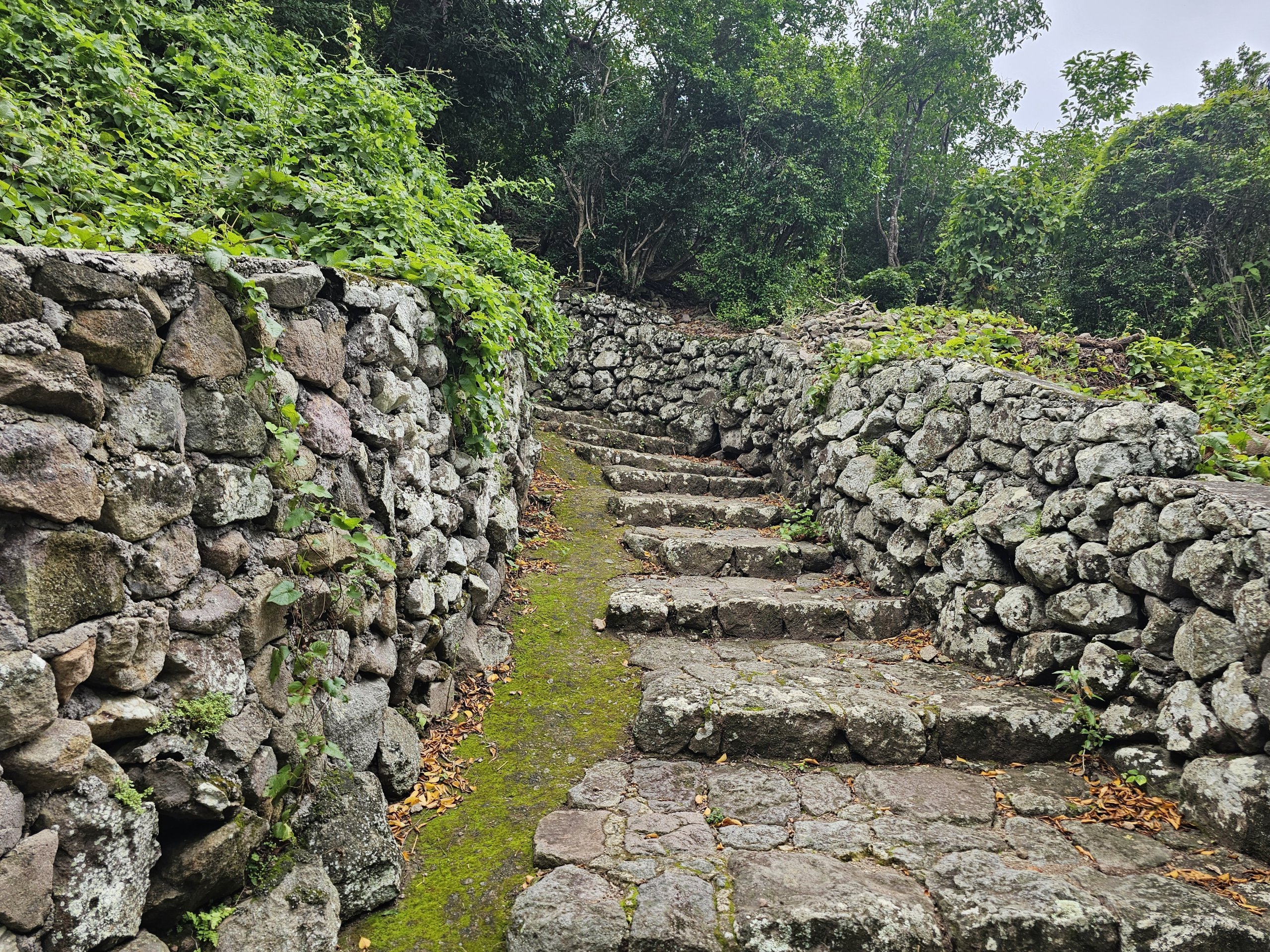 Stien går på glatte steiner, og det er rekkverk og flere gapahuker langs så godt som hele strekningen. Stigningen er stor, men det lette terrenget gjør stien fra Windwardside til toppen til den letteste.