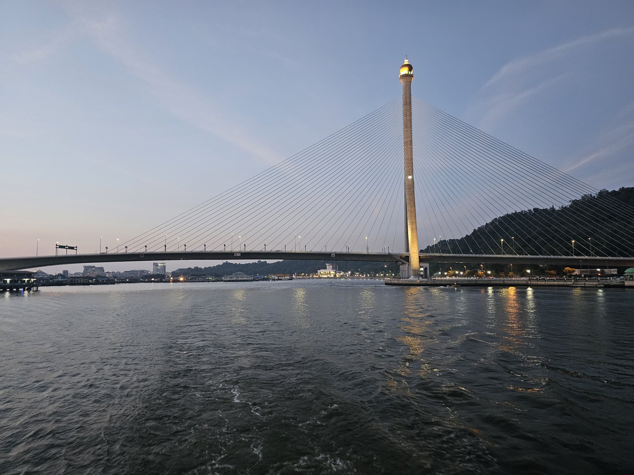 Et populært utfluktsmål for lokalbefolkningen som rusler langs strandpromenaden, er den majestetiske Brunei River Road Bridge med sin vakre, gylne kuppel på den ene støtten.