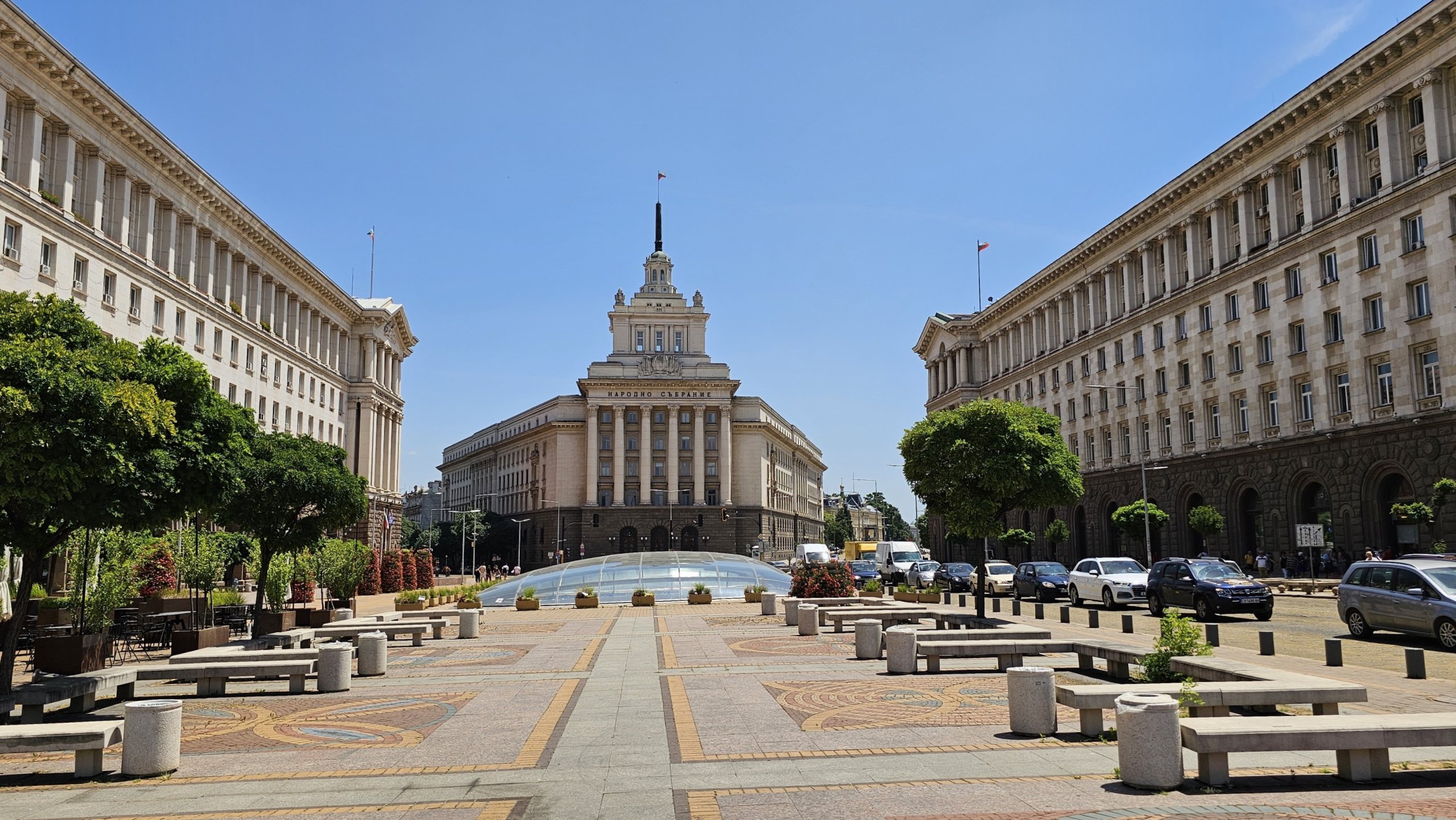 Midt i sentrum av byen, ved Serdika T-banestasjon, finner du tre monumentale regjeringsbygninger rundt Uavhengighetsplassen.