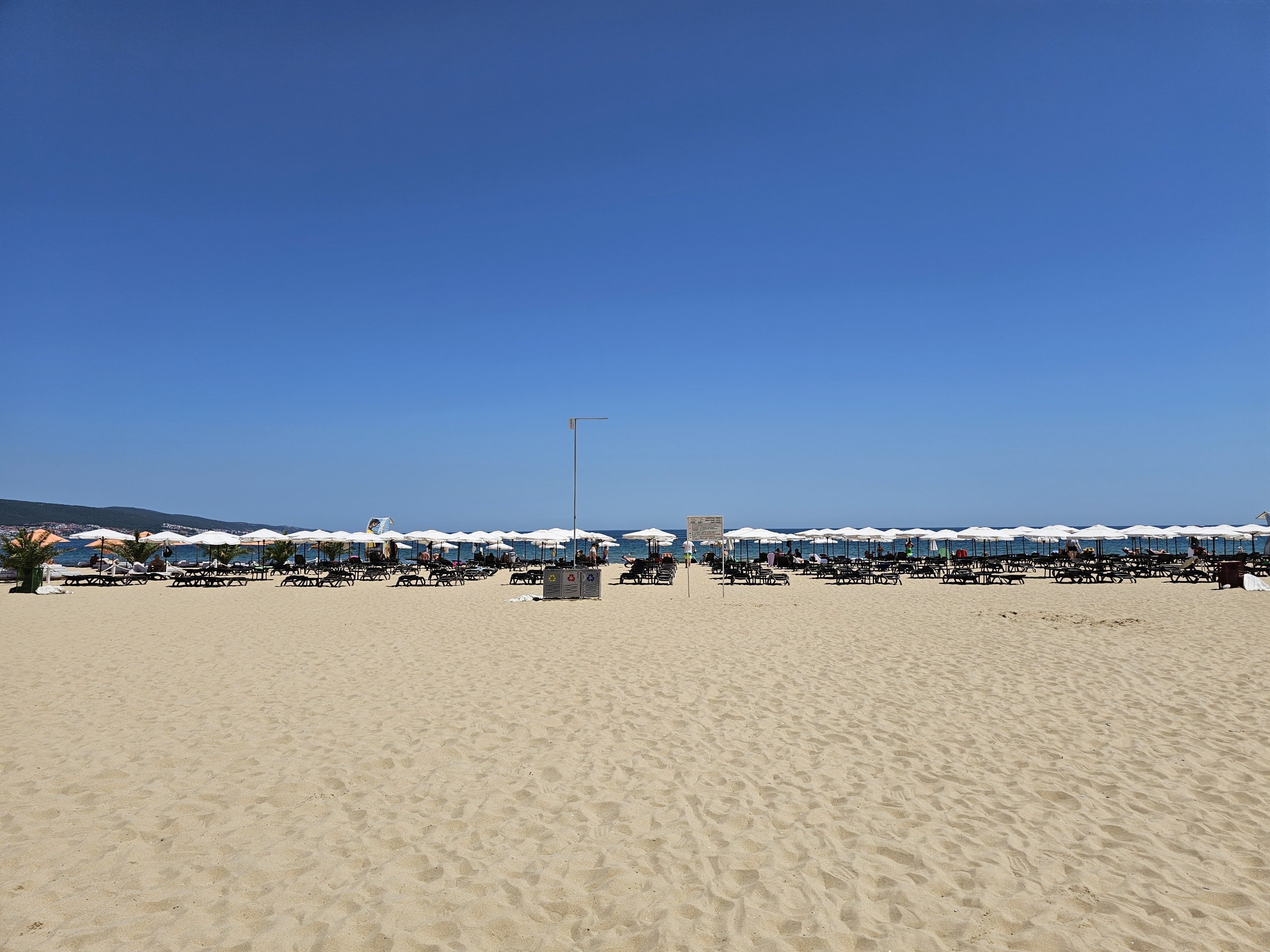 Solsenger og parasoller er tilgjengelige langs hele stranden og kan leies for 10 bgn/stykk/dag. Så for et sett med to solsenger og en parasoll betaler du 30 bgn.