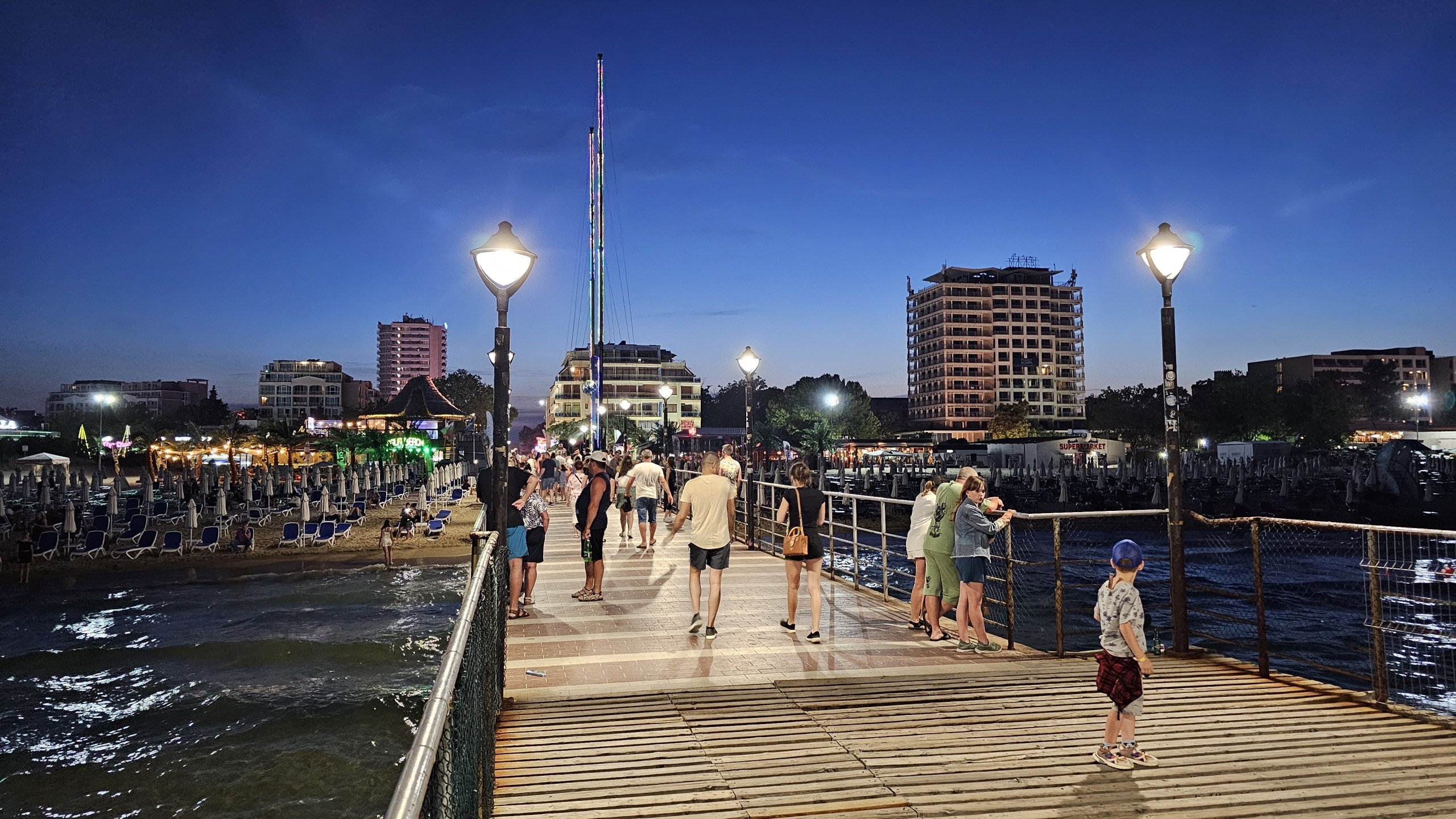Sunny Beach-brygga er et populært utfluktsmål for spaserturer, for å se på soloppgangen eller nattlysene i byen.