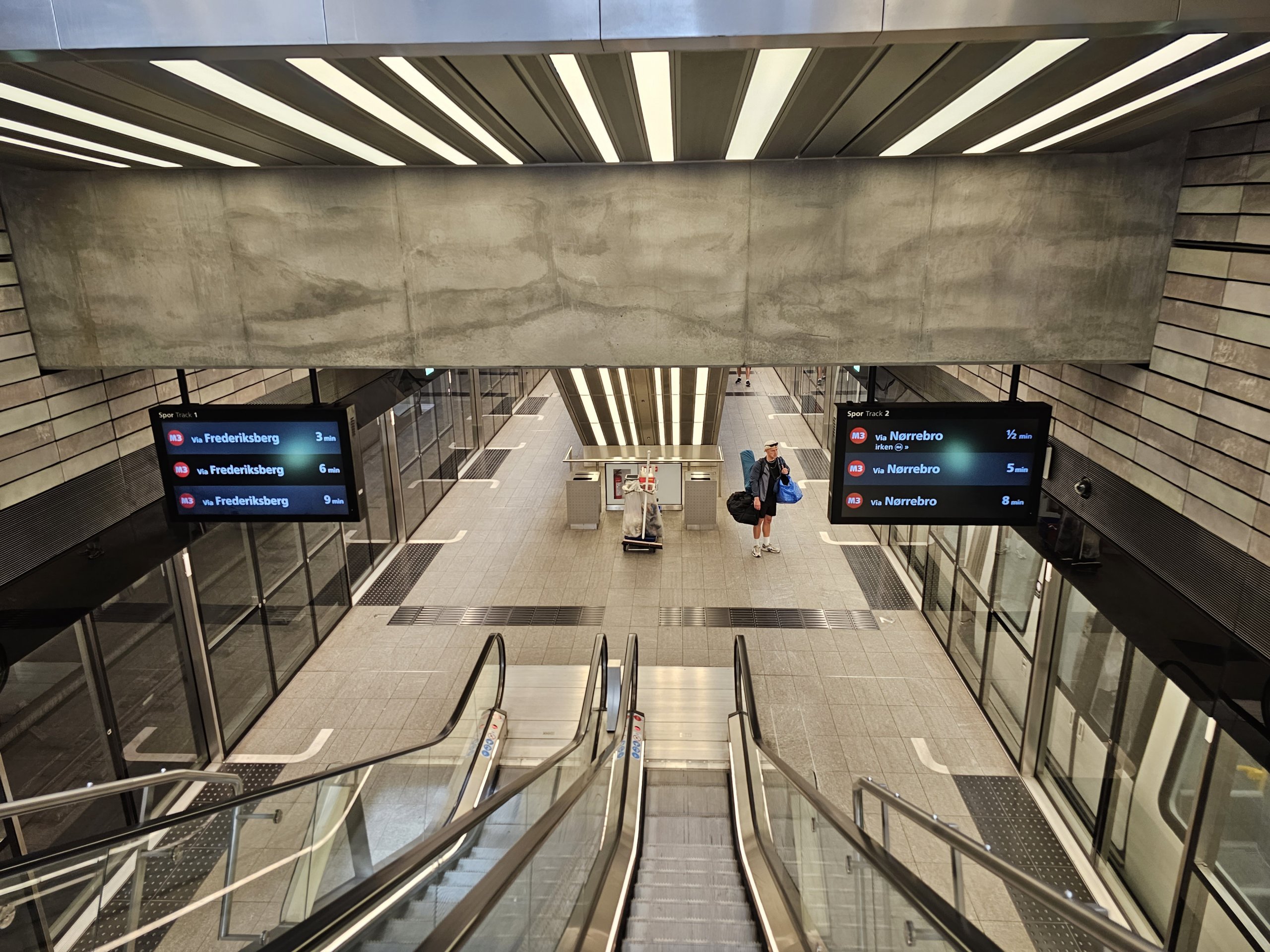 Metroen i København er helt automatisk og har ingen operatør på stedet. Stasjonene er moderne og svært rene, og det samme gjelder metrosettene.