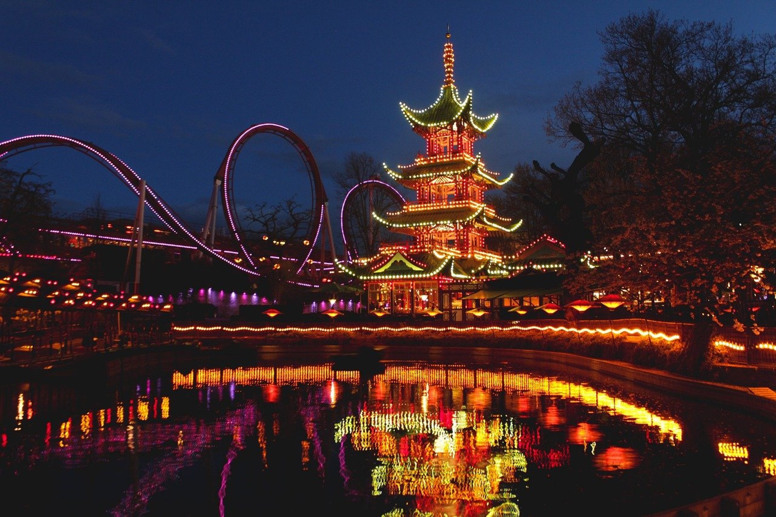 Tivoli i København er imidlertid ikke bare en fornøyelsespark med forlystelser, men også et hyggelig sted å slappe av med en dam, masse grøntområder, restauranter og kafeer. Parken er oppkalt etter den italienske byen Tivoli, hvor de romerske keiserne pleide å dra for å slappe av og underholde seg.