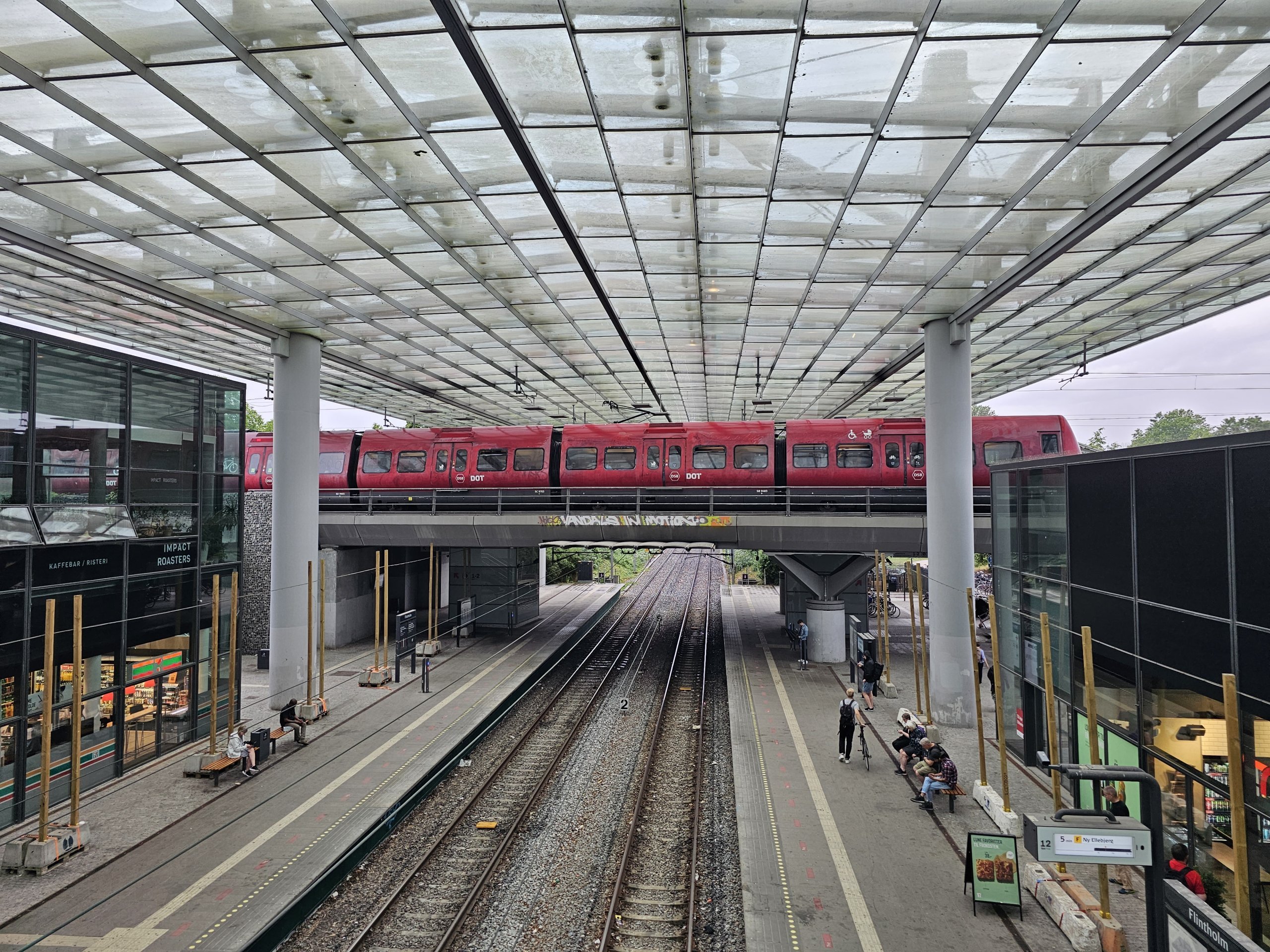 Københavns sentrum krysses fra nord til sør av en hovedjernbanelinje med høy frekvens og avganger hvert 2.-10. minutt.