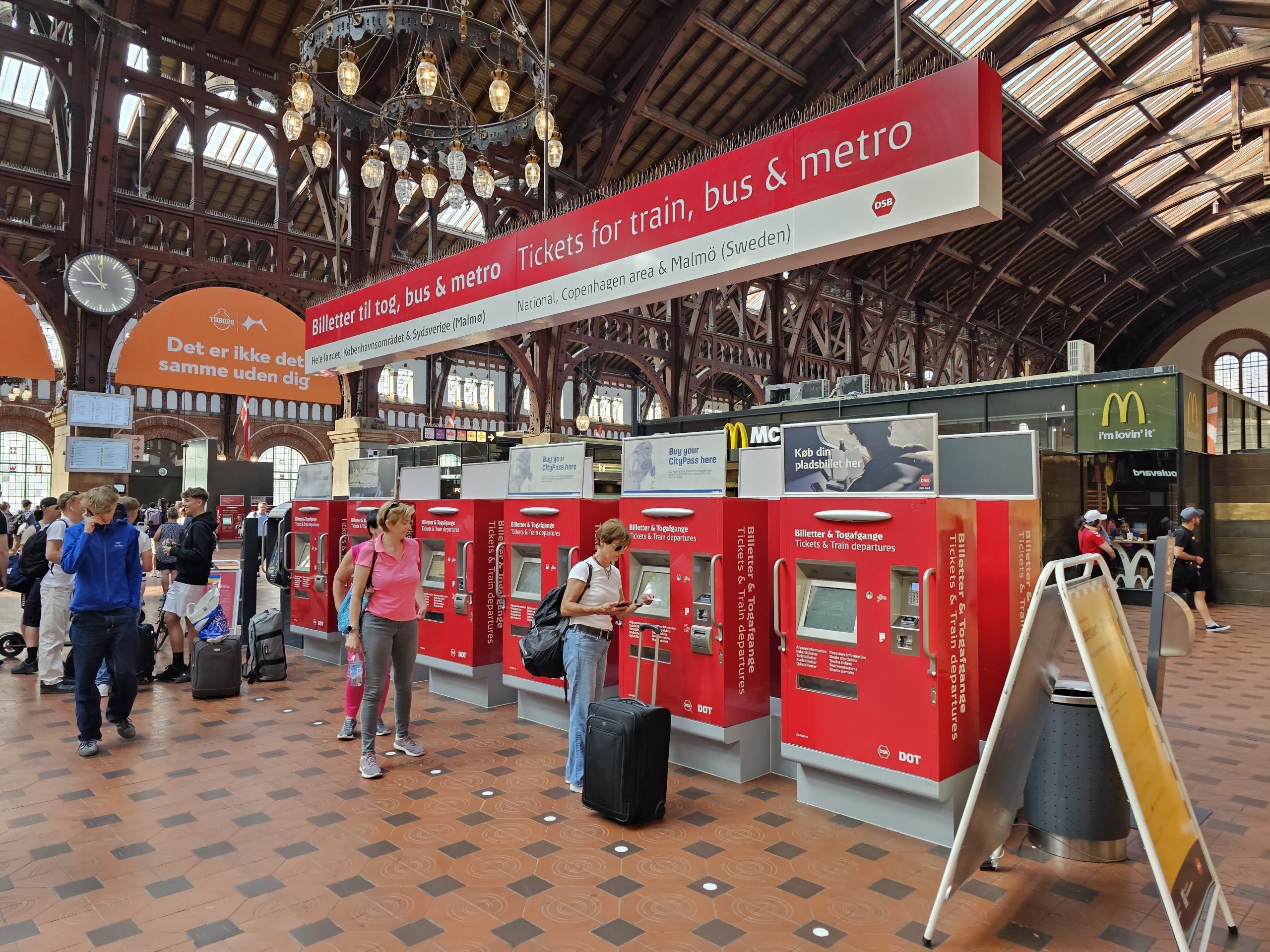 Billettautomatene er firkantede og sølvfargede. Du finner dem på undergrunnsstasjoner eller jernbanestasjoner, der de suppleres av røde DSB-automater. Du kan også kjøpe billetter til offentlig transport i København som gjelder til buss eller metro.
