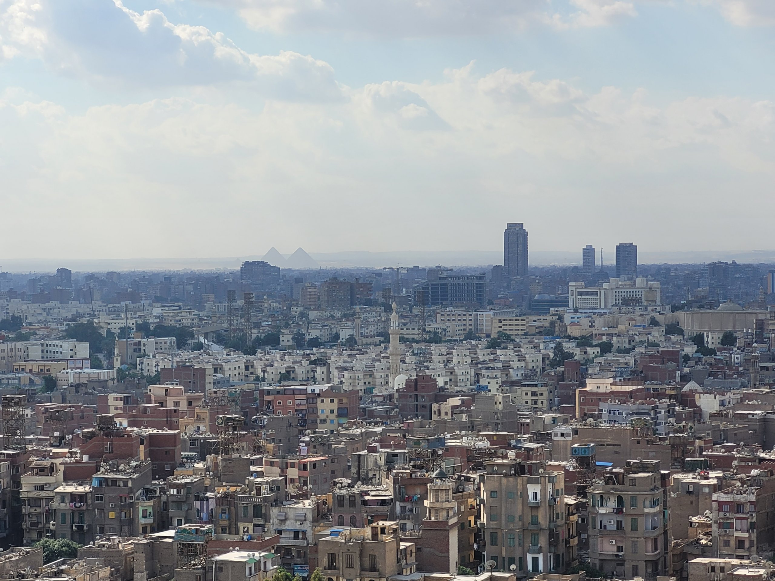 Murene til Saladin-citadellet byr på noen av de mest spektakulære utsiktene over byen, med minaretene i det islamske Kairo som reiser seg i forgrunnen, mens Giza-pyramidene kan sees i full avstand.