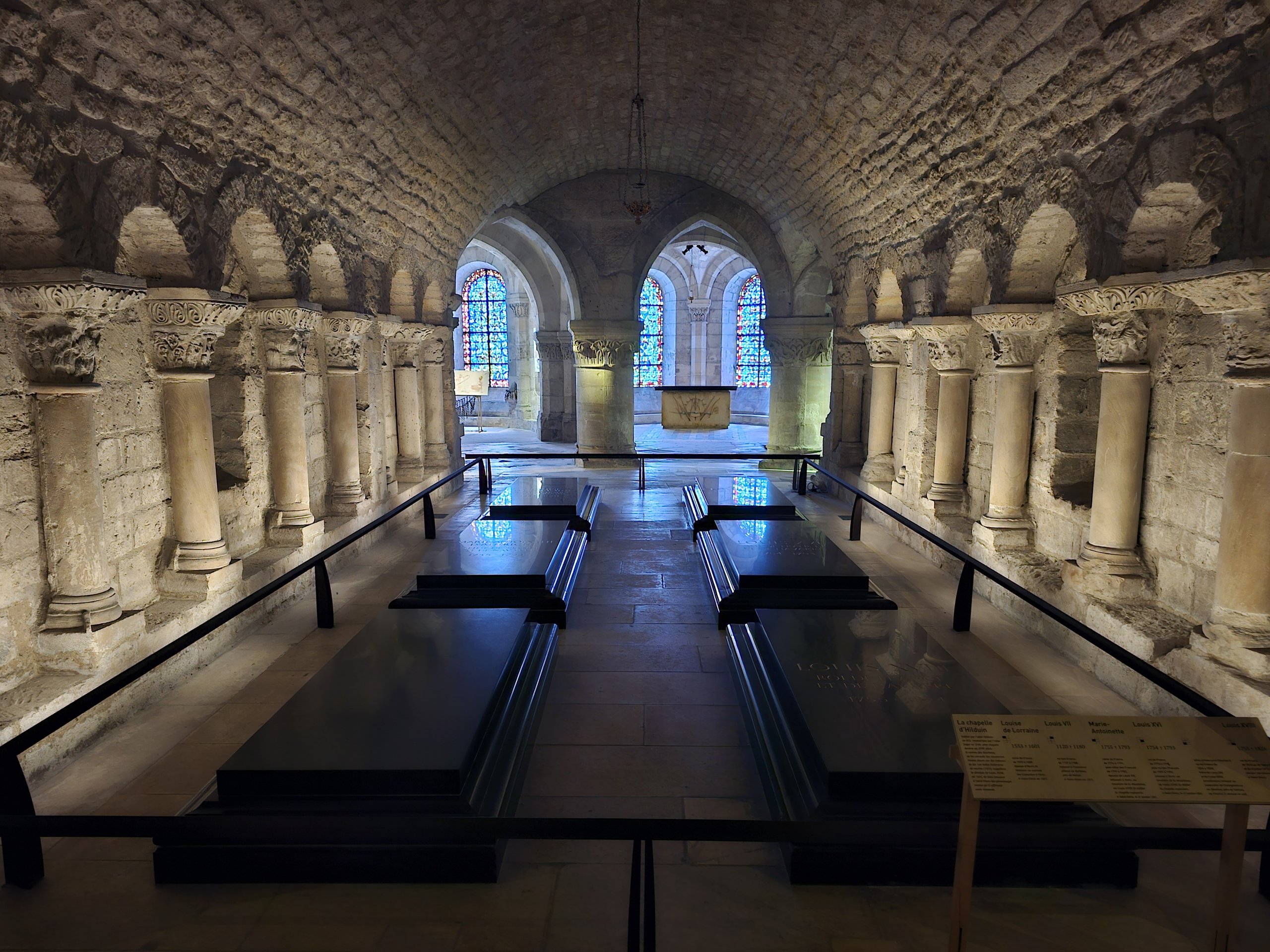 På midten av 1800-tallet, da bourbonerne overtok kontrollen over Frankrike etter Napoleon, åpnet de massegravene for å flytte kongenes levninger tilbake til basilikaen. Det var imidlertid umulig å vite hvem som tilhørte hvem, og derfor ble det bygget en krypt og et benhus i kirken til dette formålet, der alle likene fra massegraven ligger bak to marmorplater med navn på.