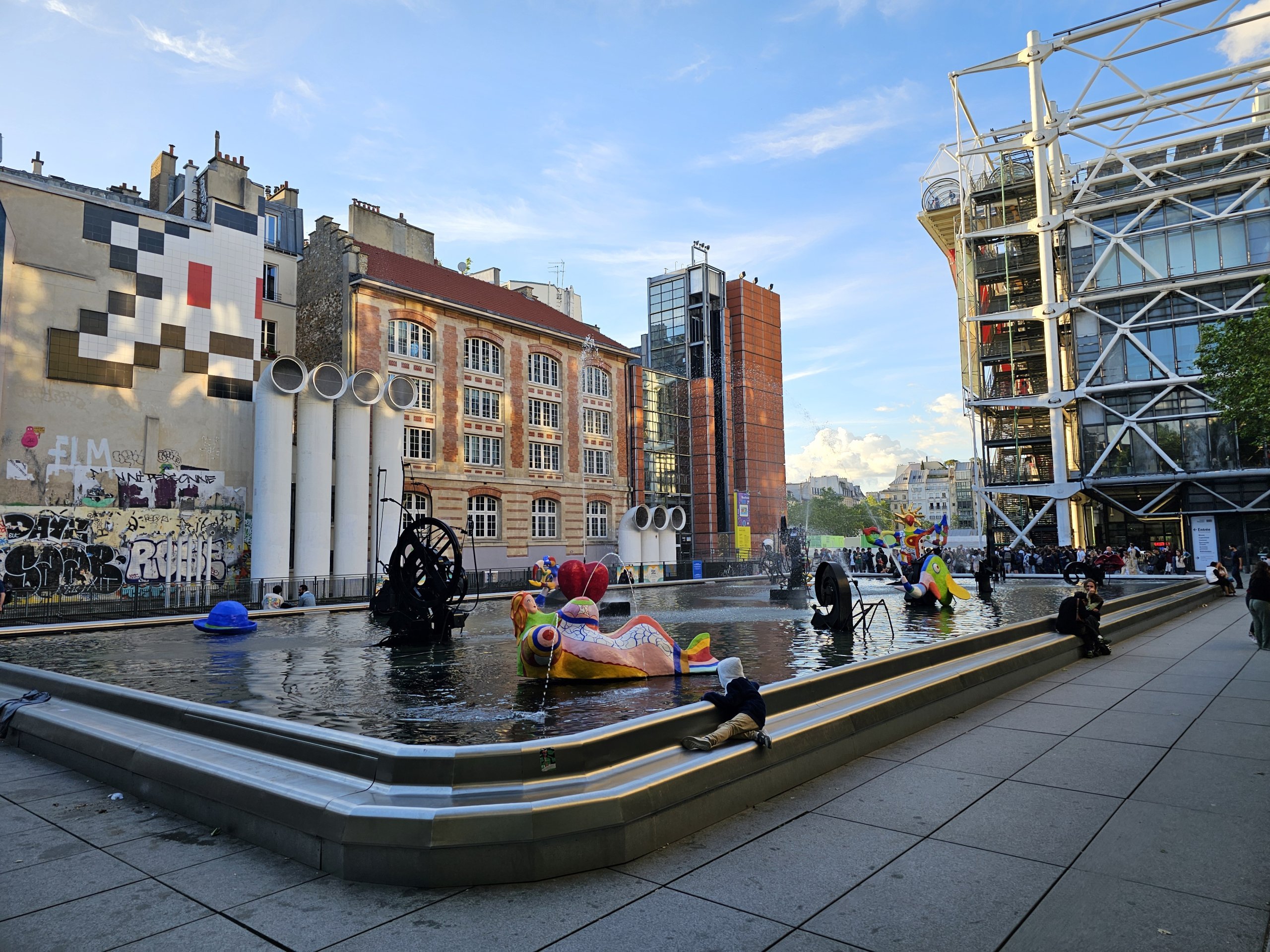 På sørsiden av Centre Pompidou kan du stoppe ved det lille torget Place de Igor Stravinsky med den futuristiske fontenen fra 1983.
