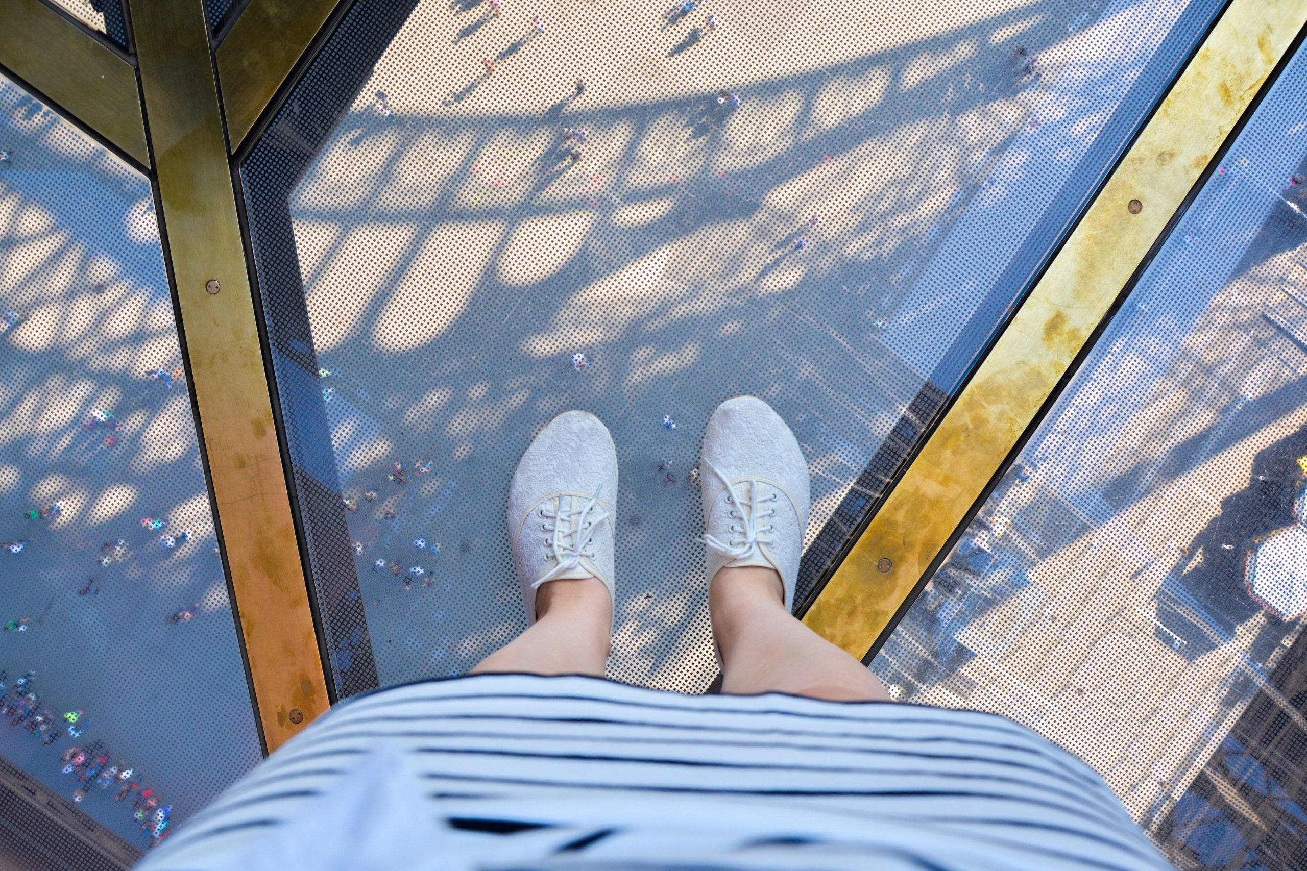 Hvis du har billetter til 2. etasje eller toppetasjen (The Top), kan du når som helst ta turen innom 1. etasje, enten med heis eller trapper.