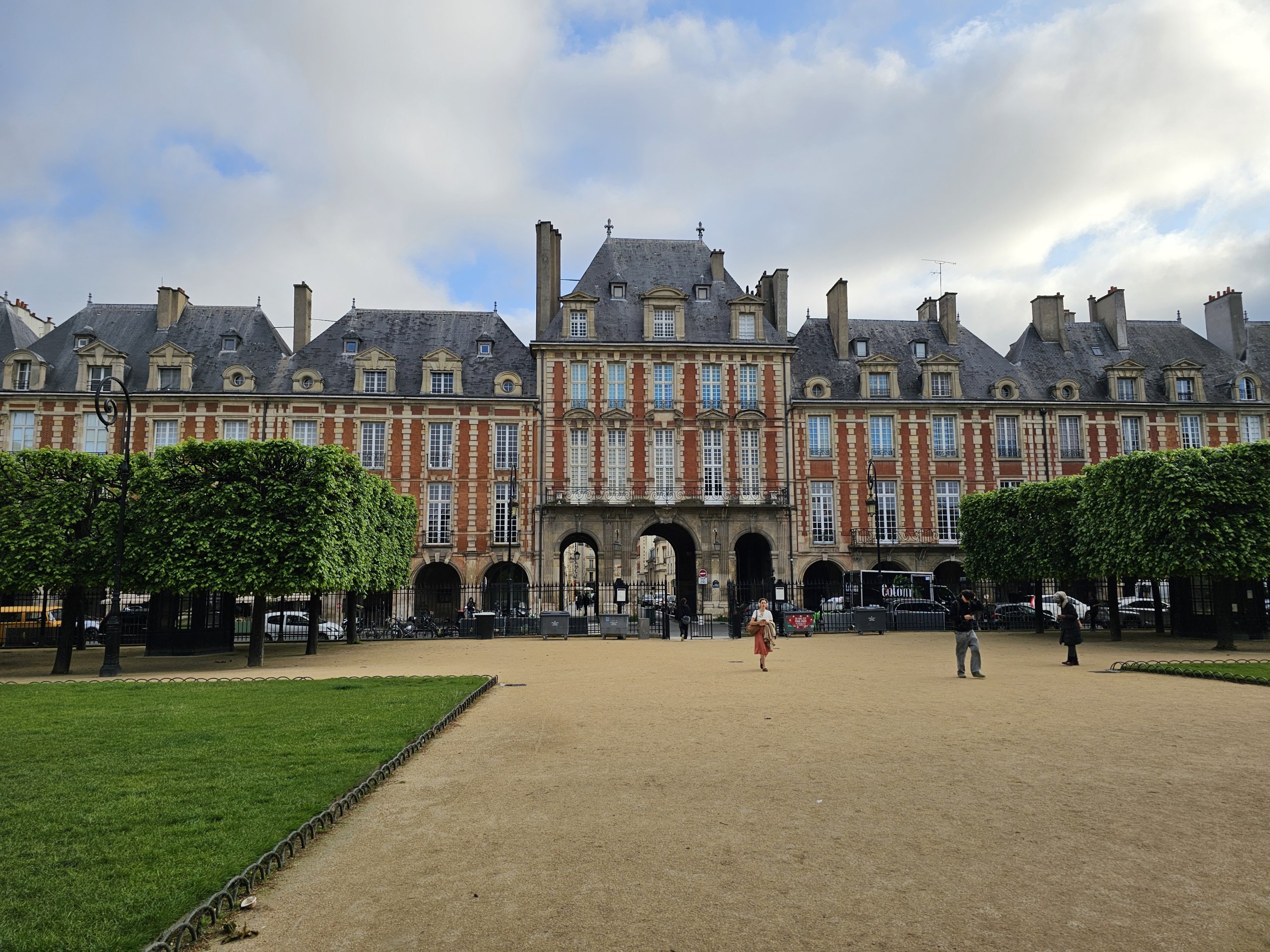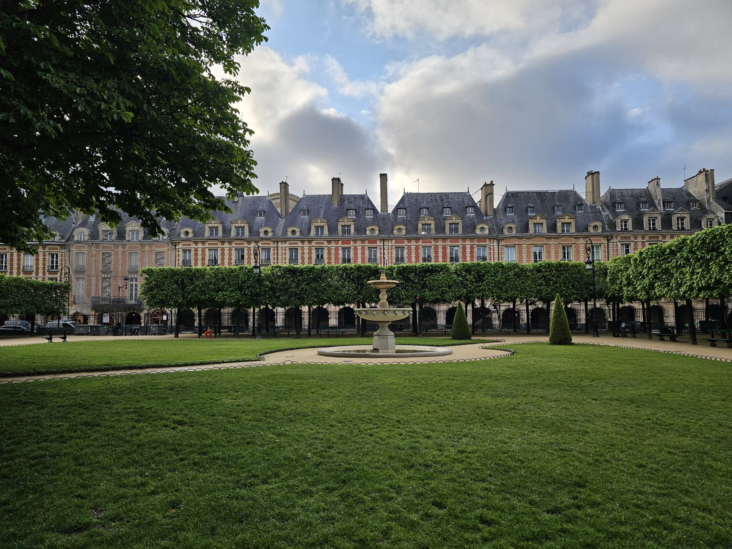 Place des Vosges er en av de eldste planlagte og absolutt vakreste plassene i Paris. Plassen ligger i bydelen Le Marais, og er et ekstremt rolig sted midt i en tett byutvikling.