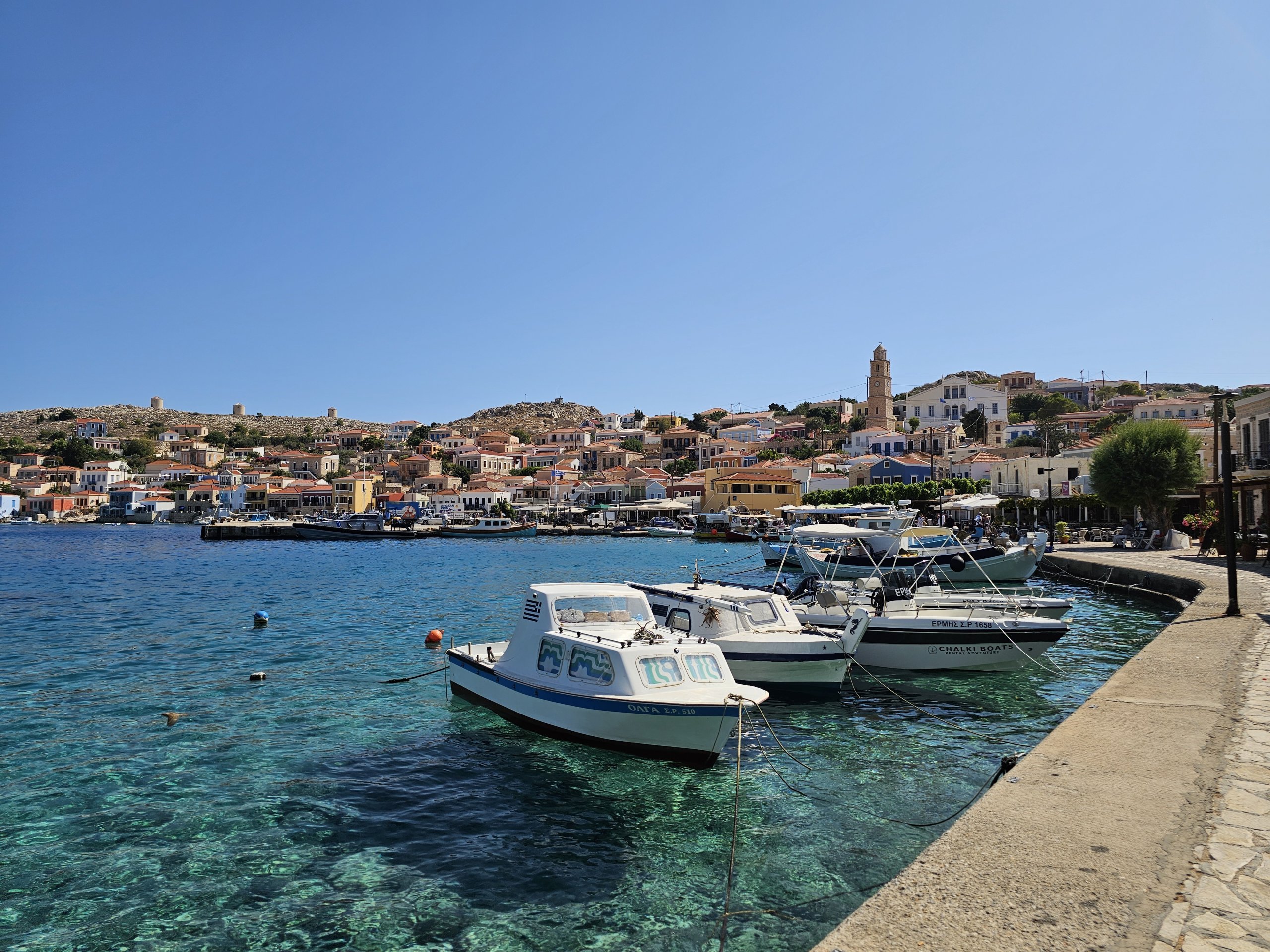 Havnebyen Chalki er den eneste bebodde bebyggelsen på øya, og nesten alle innbyggerne bor her.