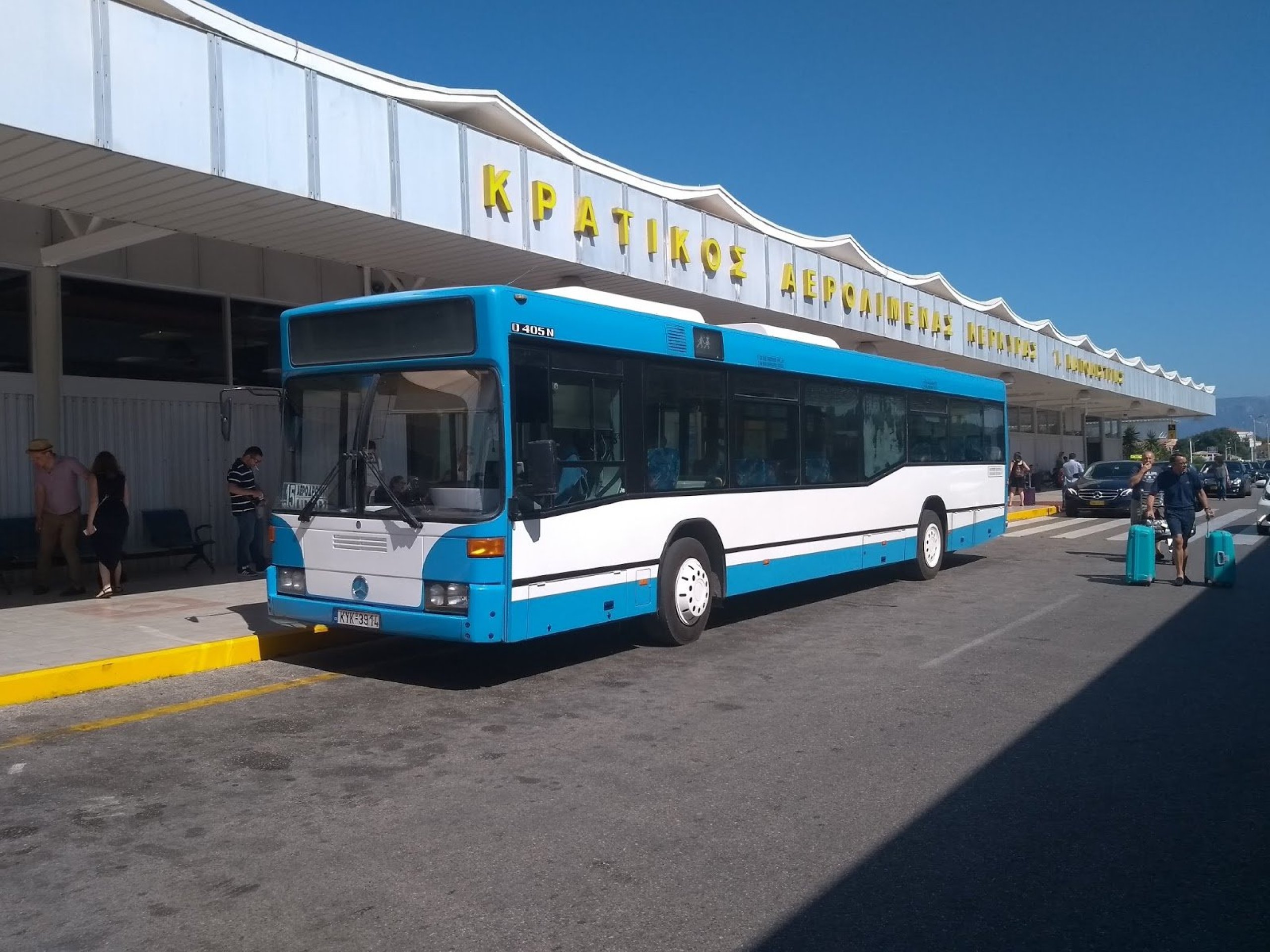 Blå busser tilbyr også transport til flyplassen på linje 15 (rute og rutetabell). Du finner mer informasjon på siden for Korfu lufthavn.